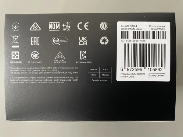 The Zepp Health Amazfit GTS 4 is a smart watch designed to cater to various needs, both in fitness and everyday convenience. Featuring a 1.75-inch AMOLED display with a resolution of 390 x 450 pixels, this device offers vibrant color support and an always-on display option to keep essential information readily accessible. With a lightweight aluminum alloy case, it combines style and durability, making it suitable for any occasion. The smart watch supports an extensive range of functions including VO2 max monitoring, real-time location tracking, and activity tracking across 154 sports modes, allowing users to optimize their workouts and health management. Equipped with a 300 mAh rechargeable battery, the Amazfit GTS 4 requires only 2 hours for a full charge, ensuring long-lasting performance throughout the day. In addition to fitness features, it supports communication functionalities such as instant message replies and call management, helping users stay connected. With water resistance up to 50 m, it is perfect for swimming or outdoor activities. The inclusion of built-in Alexa provides voice control capabilities, enhancing convenience and functionality for users on-the-go.