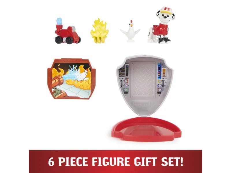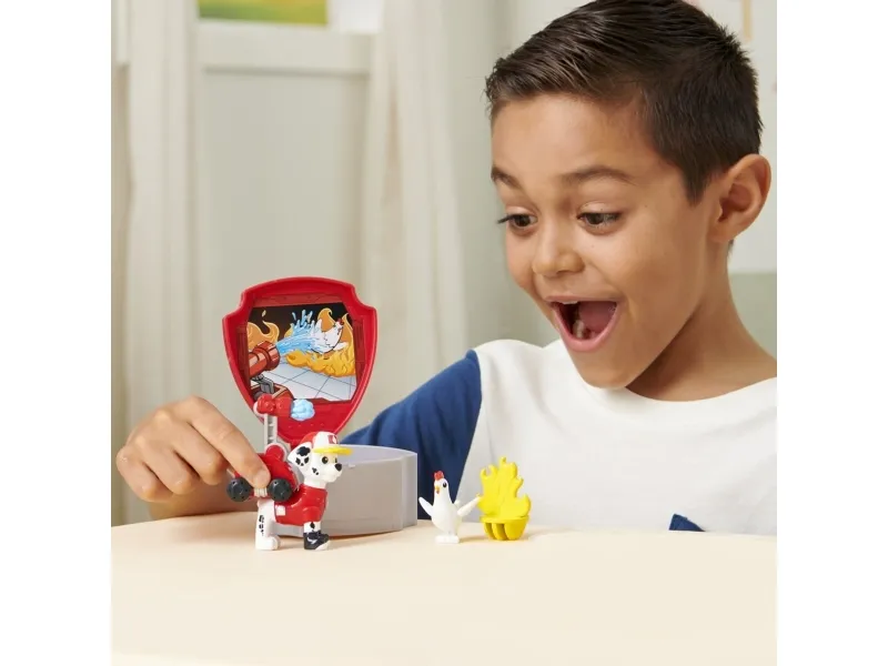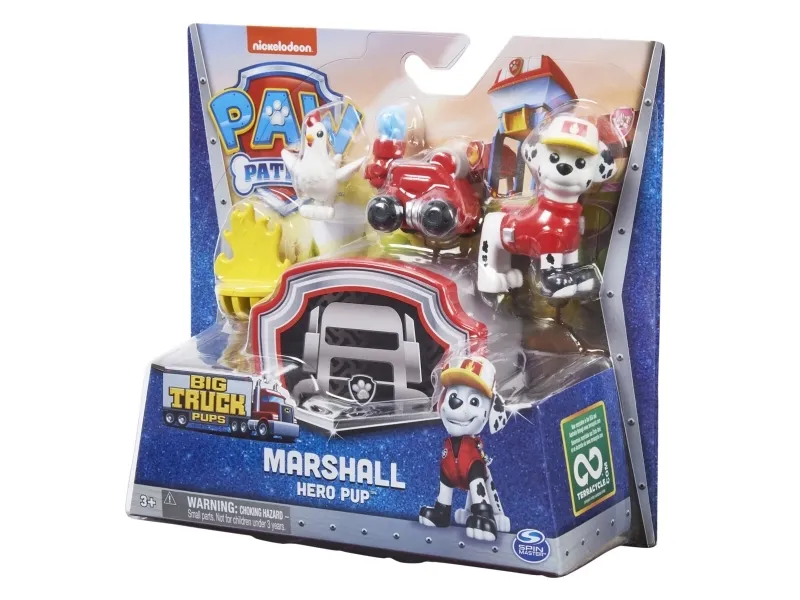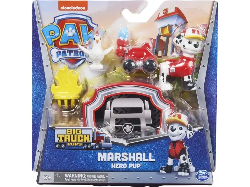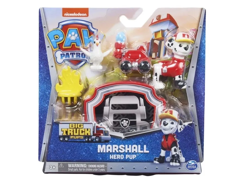 Tag med PAW Patrols Marashallpå spændende redningsmissioner og genoplev dine yndlingsøjeblikke fra PAW Patrol Big Truck Pups-serien. Dette eksklusive Marshall-figursæt har realistiske detaljer og inkluderer en dyreven at redde, noget tilbehør med redningstema og en fantastisk clip-on drone, der kan fastgøres til hans rygsæk og derefter startes med et tryk på en knap. Når problemerne melder sig, skal du tænde for redningsdronen for at forberede Marshall til handling. Når det er tid til en spændende redning, skal du trykke på mærket på Marshalls bryst for at affyre redningsdronen, overvinde forhindringer og hjælpe med redningen. Efter redningsaktionen kan du lade som om du ser handlingen på Mobile Command Pod, der fungerer som en taske til dit legetøj, når du er på farten. Med PAW Patrol legetøj kan børn udforske deres fantasi og udvikle deres motoriske færdigheder gennem leg, mens de genoplever deres yndlingsscener fra serien, som Mighty Pups og PAW Patrol Movie, eller skabe helt nye eventyr med alle PAW Patrol hvalpene (sælges hver for sig). For endnu flere serie-inspirerede redninger, føj resten af PAW Patrol: Big Truck Hero Pups til din samling sammen med det spændende Truckstop HQ (figurer og legesæt sælges hver for sig). PAW Patrol actionfigurer, legetøjsbiler. legesæt og bløde dyr er det perfekte legetøj til drenge og piger fra 3 år og opefter, så slå dig sammen med Marshall og tag action med hjem med PAW Patrol Big Truck Pups.