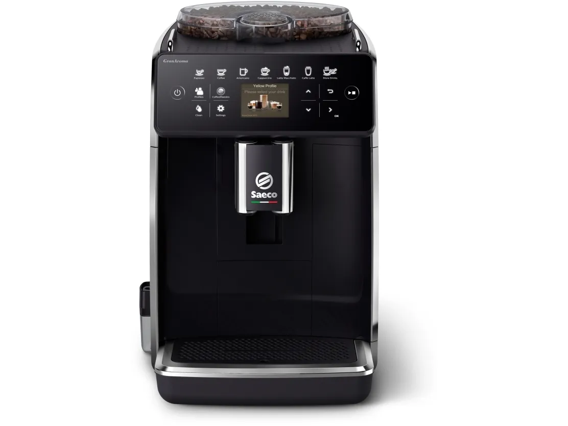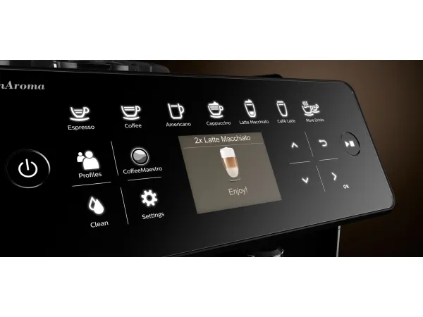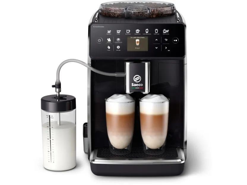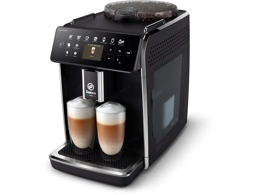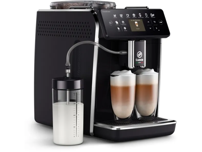 Brand- Saeco. Model- SM6480/00. Depth- 48.9 cm. Width- 28.3 cm. Height- 39.3 cm. Weight- 10 kg. Colour- Black. Power- 1500 W. Maximum working pressure- 15 Bar. Type of coffee- Ground coffee, Coffee beans. Types of beverages- Lungo, Latte Macchiato, Ristretto, Espresso Macchiato, Hot water, Portion of milk, Portion of milk foam, Coffee, Espresso, Caffè latte, Cappuccino. Water capacity- 1.8 l. Coffee bean capacity- 300 g. Capacity for milk- Yes. Milk container capacity- 0.6 l. Coffee grounds container (cups/capsules)- 12. Coffee strength adjustment- Yes. Water hardness adjustment- No. Preparing several cups at once- Yes. Steam nozzle- Yes. Cup warming- Yes. Integrated coffee grinder- Yes. Adjustable coffee coarseness- No. Preserving coffee recipes- Yes. With manometer- No. Automatic washing- Yes. Automatic descaling- Yes. Programmable water temperature- Yes. Programmable coffee quantity- Yes. Automatic shutdown- Yes. Screen- Yes. Type of coffee machine- Automatic. Preparation of cold drinks- No. Coffee drinks copy and personalization- Yes. Mandatory warranty- 24 mo.