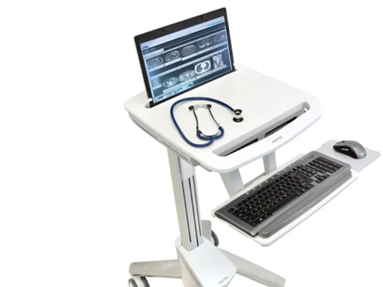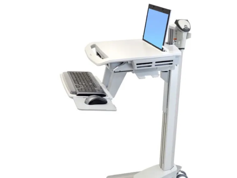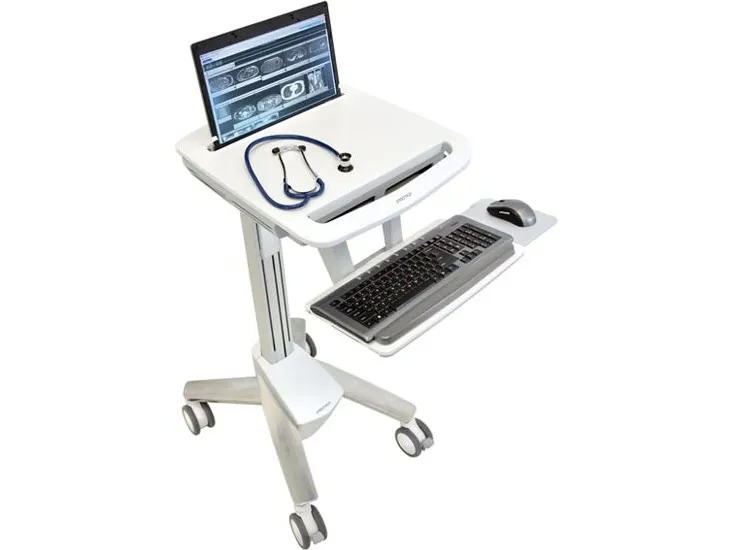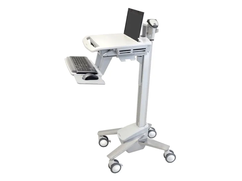 Discover the perfect blend of functionality and design with the Ergotron StyleView sv40, a versatile AV cart designed to enhance your workspace efficiency. This cart is built to accommodate notebooks, keyboards, mice, and barcode scanners, making it a suitable solution for medical environments and light duty tasks. With its adjustable height feature, courtesy of the Patented Constant Force Technology, users can easily modify the cart's position to suit their ergonomic needs, promoting comfort and productivity throughout the day. The Ergotron StyleView sv40 also prioritizes safety and organization. Equipped with locking casters, the cart can be securely positioned to prevent unwanted movement. The integrated cable management system ensures that cables are neatly organized, reducing clutter and minimizing potential trip hazards. Constructed from high-quality materials such as aluminum, high-grade plastic, and zinc-plated steel, this cart is designed for durability and long-term use. Whether you're in a medical setting or in need of a reliable solution for your computing needs, the Ergotron StyleView sv40 cart offers a seamless blend of style, performance, and convenience.