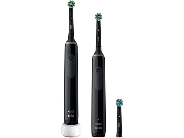 Oral-B Pro 3 3900. Purpose: Adult, Toothbrush type: Oscillating toothbrush, Teeth brushing modes: Daily care, Sensitive, Whitening. Power source: Battery, Battery type: Built-in battery, Battery technology: Lithium-Ion (Li-Ion). Weight: 392.1 g, Package width: 94 mm, Package depth: 169 mm. Number of handles included: 2 pc(s), Number of brush heads included: 2 pc(s). Quantity per pack: 1 pc(s), Master (outer) case width: 291 mm, Master (outer) case length: 348 mm