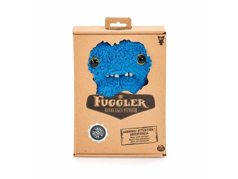 Rampete plysjmonster med rare tenner. Å adoptere en 22 cm Fuggler er ikke en sak for sarte sjeler. Dette morsomme, stygge monsteret av et blått Gaptooth McGoo tannløst monster er pøblete og misforstått – og har bare rampestreker i sikte. Det stirrende, gale monsteret har hovne øyne, blå pels og litt for mye mellomrom mellom tennene.