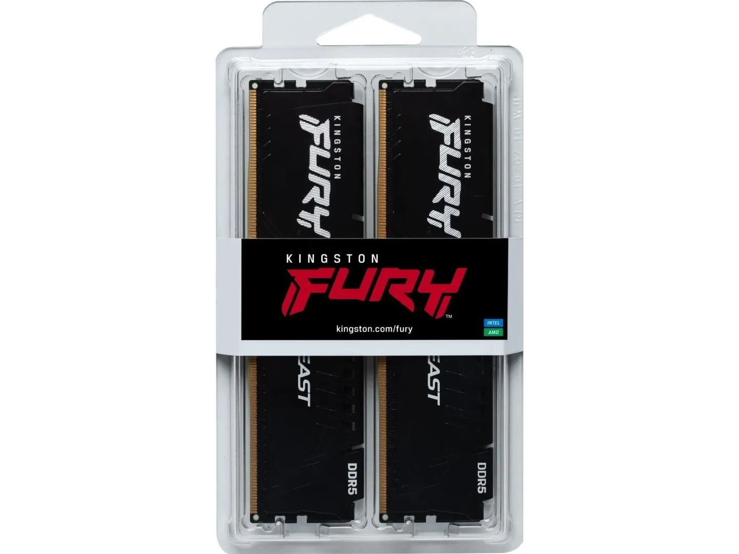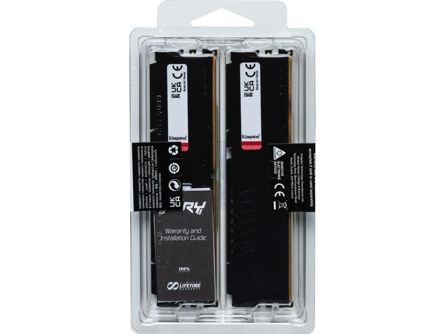Kingston FURY KF552C36BBEK2-32 is a kit of two 2G x 64-bit (16 GB) DDR5-5200 CL36 SDRAM (Synchronous DRAM) 1Rx8, memory module, based on eight 2G x 8-bit FBGA components per module. Each module kit supports AMD EXPO v1.0 and Intel Extreme Memory Profiles (Intel XMP) 3.0. Total kit capacity is 32 GB. Each module has been tested to run at DDR5-5200 at a low latency timing of 36-40-40 at 1.25 V. The SPDs are programmed to JEDEC standard latency DDR5-4800 timing of 40-39-39 at 1.1 V. Each 288-pin DIMM uses gold contact fingers.