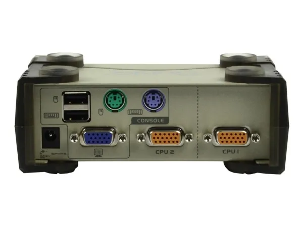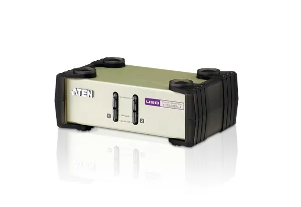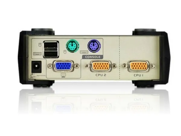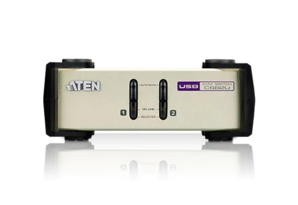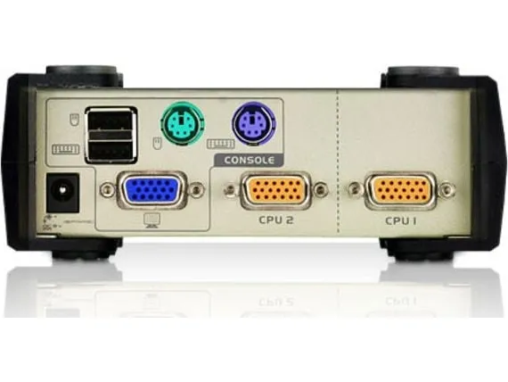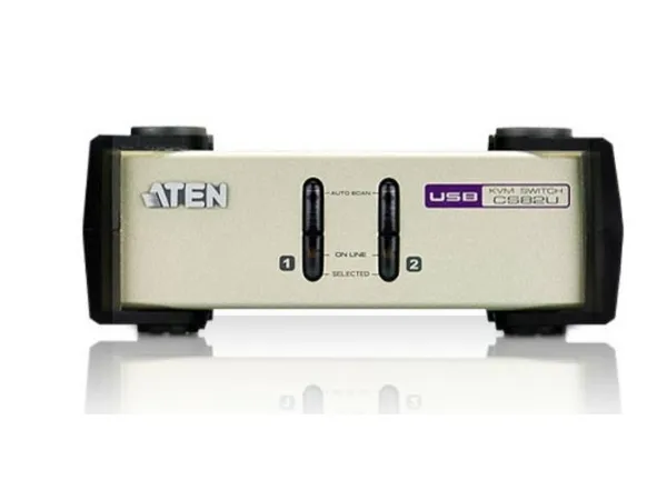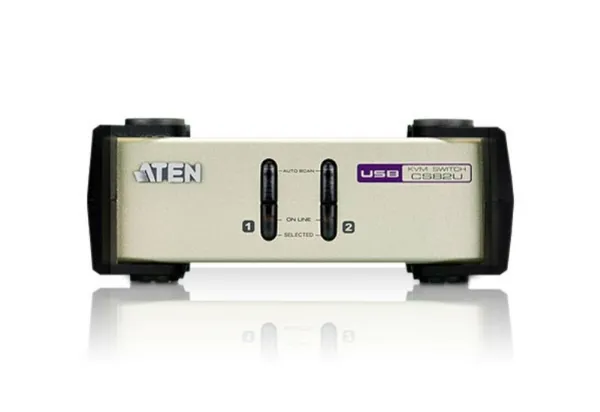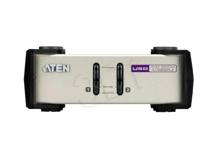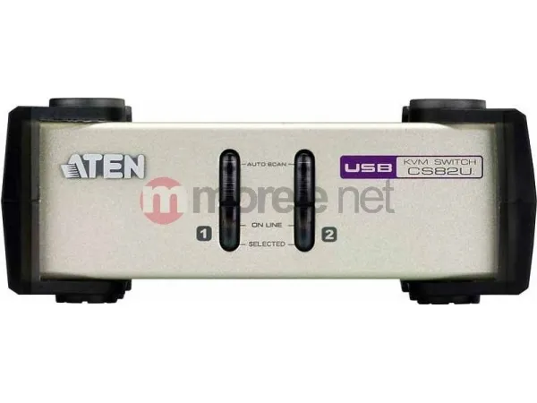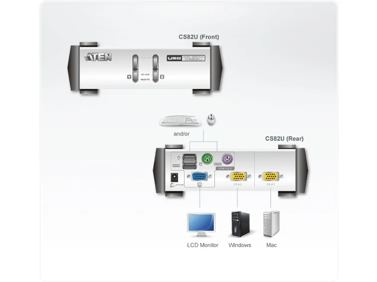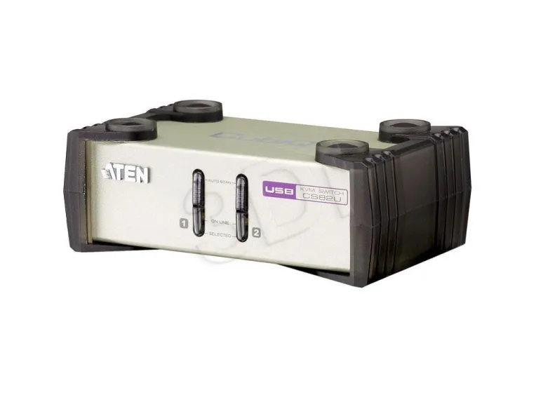 CS82U PS/2-USB KVM-Switch är en stationär styrenhet som gör att användare kan komma åt två datorer från en enda KVM-konsol (PS/2 eller USB-tangentbord och mus och VGA-bildskärm). Dessutom kommer CS82U med ATEN nya video DynaSync™-teknik som eliminerar boot-up displayproblem och optimerar upplösning. Installationen är snabb och enkel, bara att ansluta kablarna i sina lämpliga uttag. Det finns ingen programvara för att konfigurera, inga rutiner för installation. Eftersom CS82U snappar tangentbordet direkt, kommer det att fungera på flera plattformar. • One PS/2-USB VGA console controls two VGA interface computers • Dual Interface - supports computers with PS/2 or USB keyboards and mice • Computer selection via front panel pushbuttons, hotkeys, and mouse • Multiplatform support - Windows, Linux, Mac, and Sun • Superior video quality - 2048 x 1536; DDC2B • Video DynaSync™ - Exclusive ATEN technology eliminates bootup display problems and optimizes resolution when switching between ports • Console mouse port emulation/bypass feature supports most mouse drivers and multifunction mice • Complete keyboard emulation for error-free booting • Mac/Sun keyboard support and emulation* • Multilingual keyboard mapping - supports English, Japanese, and French keyboards • Gaming keyboard support • Auto Scan Mode for monitoring all computers • Firmware upgradable • Non-powered * 1. PC keyboard combinations emulate Mac/Sun keyboards * 2. Mac/Sun keyboard work only with their own computers