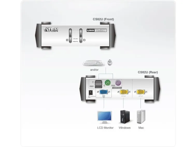 ATEN CubiQ CS82U - KVM-svitsj - 2 porter