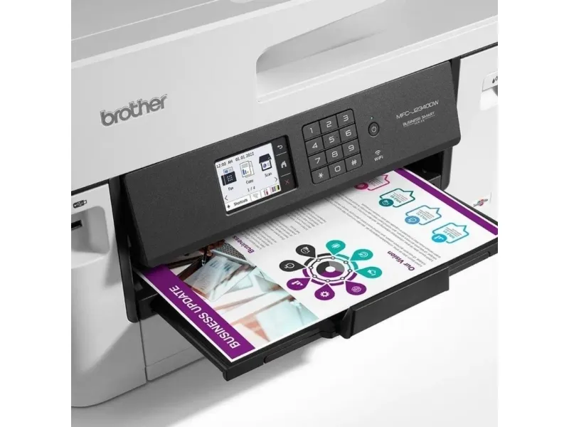 The professional A3/A4 MFC-J2340DW all-in-one printer is built to last, meeting the needs of demanding small offices and business workgroups. A3 option enables you to produce a variety of A3, as well as A4 color documents, without any hassle, while experiencing high quality prints, fast print speeds and low running costs. This all-in-one device offers print, copy, scan and fax functionality.