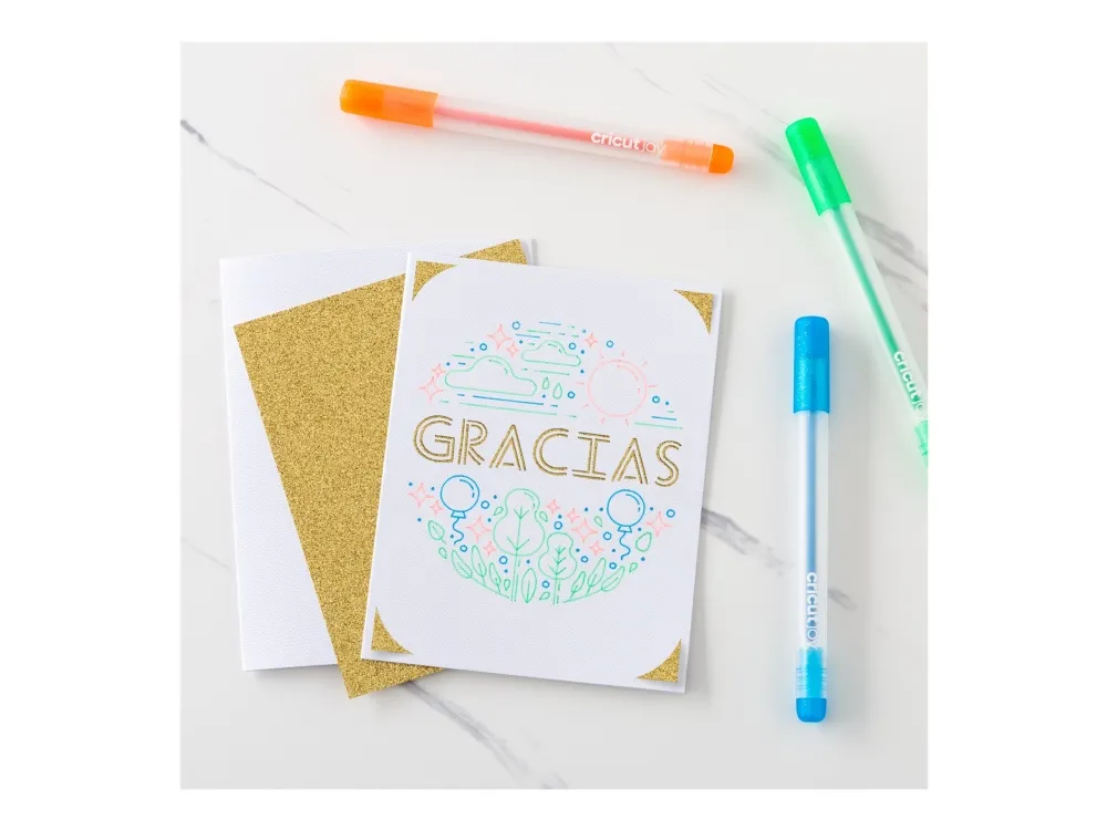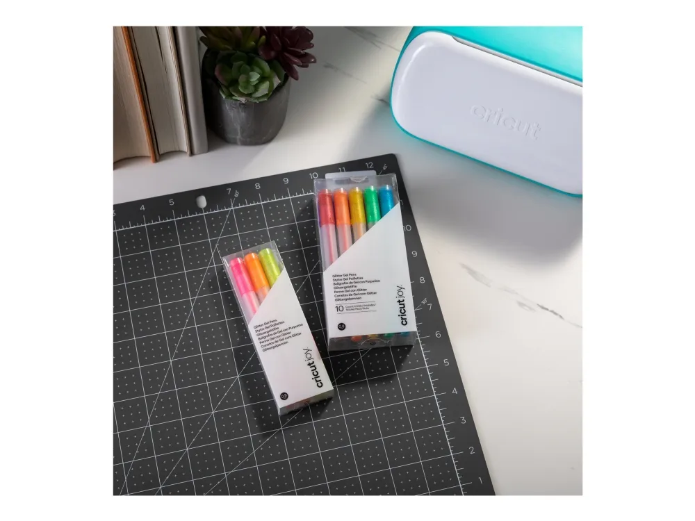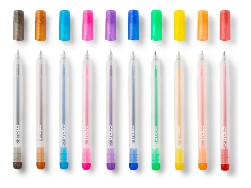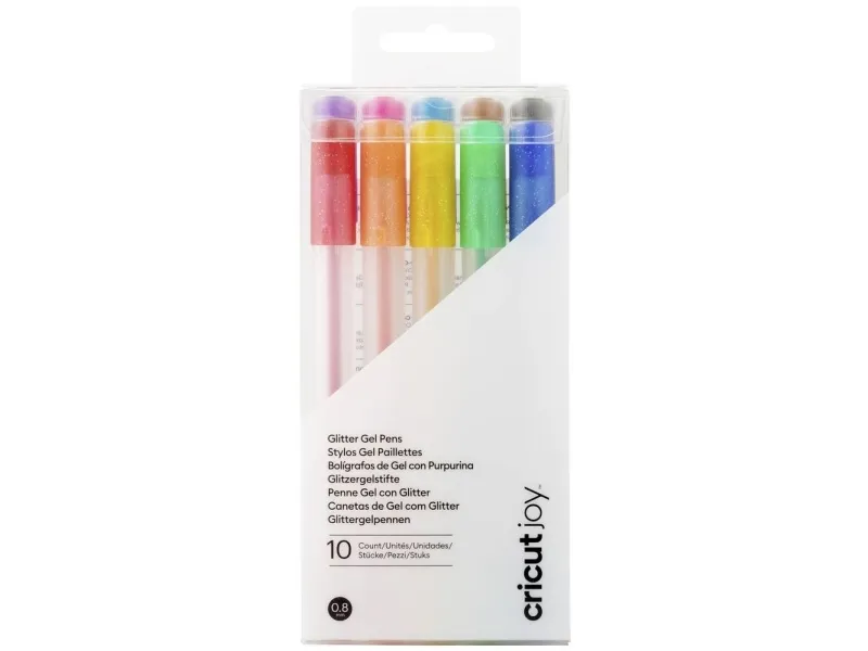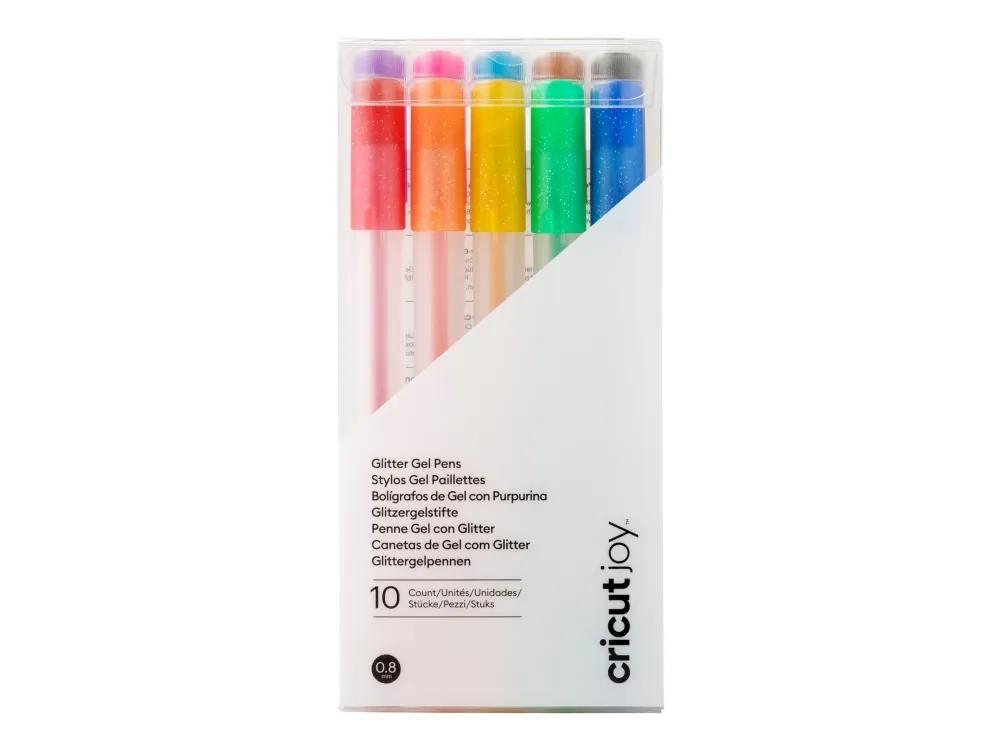 Cricut Joy™ Glitter Gel 0,8 mm, sett med 10 blå, gul, oransje, grønn, rød, svart, brun, lyseblå, rosa, lilla (2009964)