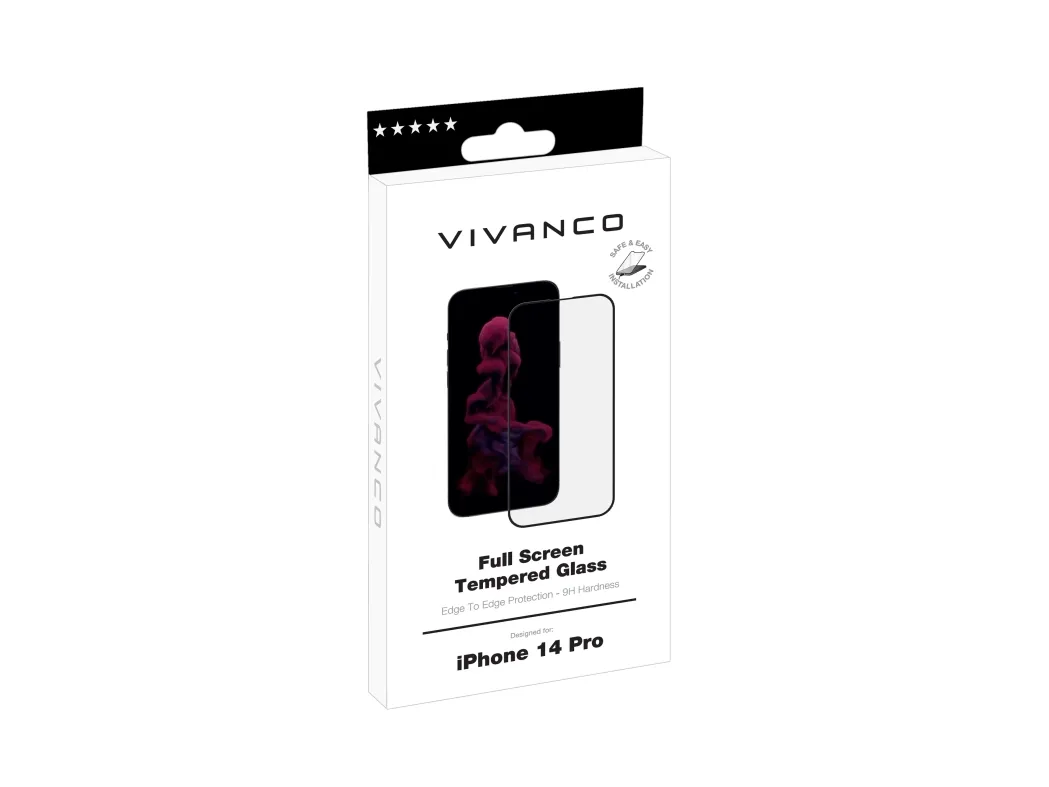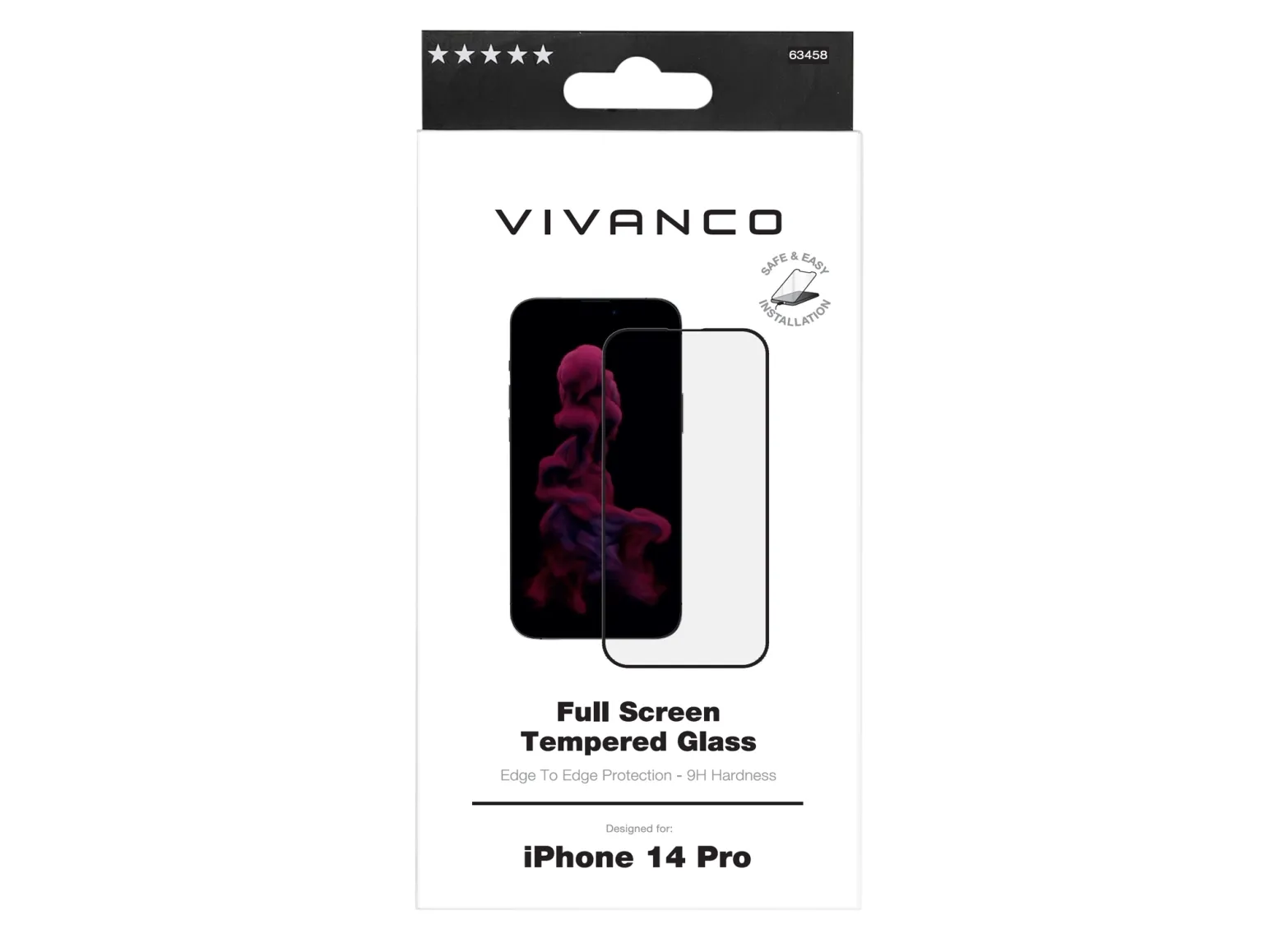 This highly transparent full screen display glass protects your display overall from scratches, impacts and dirt reliably. Neither the functionality of your touchscreen nor the brightness of your display are affected.Vivanco Full. Brand compatibility: Apple, Compatibility: iPhone 14 Pro, Protection features: Dirt resistant, Impact resistant, Scratch resistant, Shatterproof. Material: Tempered glass, Product colour: Black, Transparent. Quantity per pack: 1 pc(s)