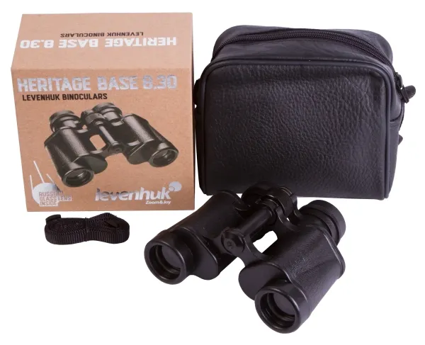 Levenhuk Heritage BASE 8x30 Binoculars come in a rugged metal body. Due to a wide field of view and 8x magnification, they are ideal for long-term field observations: you will not miss a single detail on the horizon.