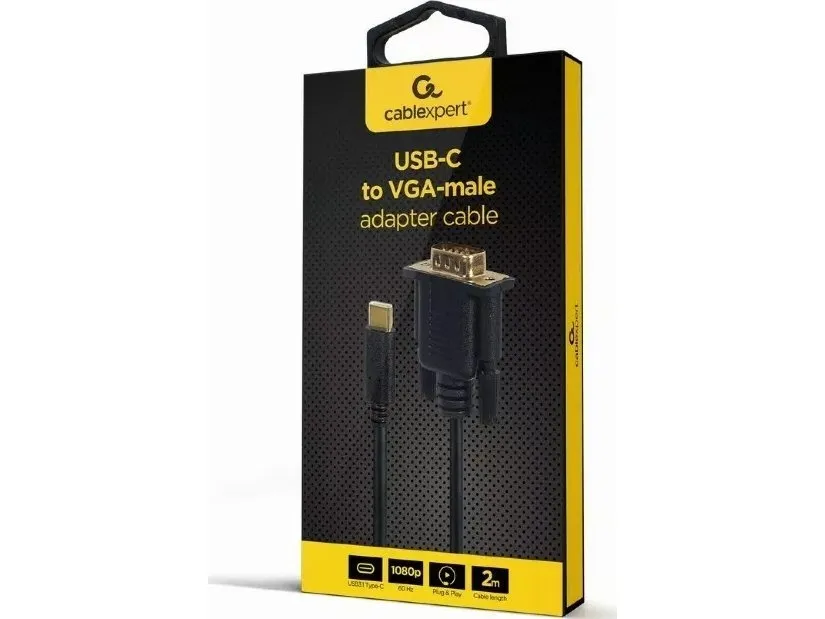 The Gembird Cablexpert A-CM-VGAM-01 video adapter cable provides a reliable solution for connecting devices with 24 pin USB-C outputs to displays using 15 pin HD D-Sub (HD-15) inputs. With support for resolutions up to 1920 x 1080 at 60 Hz, this cable ensures visual clarity for any applications. Designed with ease of use in mind, the cable operates on a Plug-and-Play basis, making it convenient for immediate connection without requiring additional software or drivers. This video adapter cable meets ISO 9002 standards for quality and complies with RoHS and EMC 2014/30/EU regulations, ensuring it is safe for the environment and reliable for use in various setups. Whether for home entertainment systems, conference room presentations, or desktop applications, the Gembird Cablexpert video adapter cable delivers dependable performance tailored to meet everyday connectivity needs.