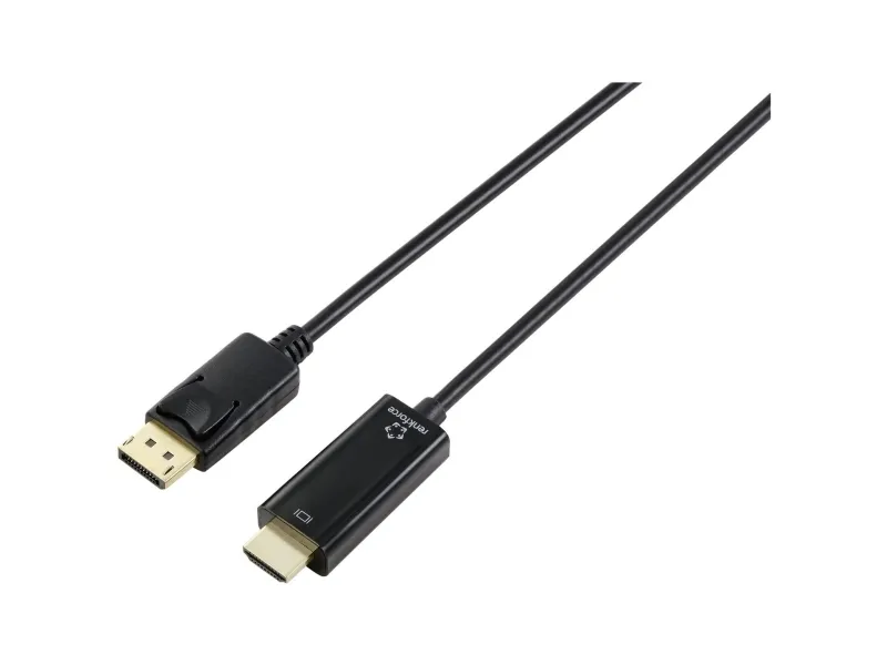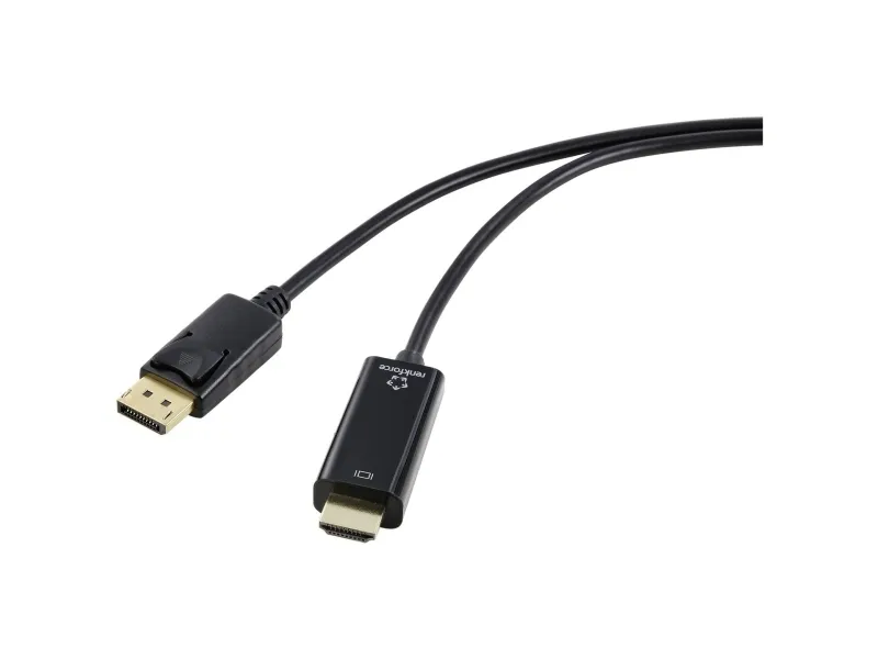 Renkforce DisplayPort- /HDMI-kabel 4K, 30Hz, DP: Passiv, 1 m Understøttede DisplayPort- og HDMI Opløsninger: 3840 x 2160 60 Hz 4:2:0 8-bit, 3840 x 2160 30 Hz 4:4:4 8-bit, 3840 x 2160 30 Hz 4:4:4 12-bit understøtter HDCP, DPCP, 1080p Full HD og 3D understøtter ukomprimeret lyd (LPCM), samt DTS, Dolby Digital, DTS-HD og Dolby True HD elektronisk konverterkabel med elektronik i HDMI-stik, Konvergerer kun ud i den angivne retning! DisplayPort-til-HDMI-kablet er ideal for tilslutning af en DisplayPort-kildeenhed, som for eksempel en pc eller bærbar computer, til et HDMI-display. Det understøtter opløsninger på op til 4K UHD 3840x2160@30Hz og reproducerer videoer med usædvanlig klarhed. Kablet kan også bruges til at tilføje en ekstra skærm for at øge arbejdsområdet og produktiviteten - både på kontoret og i private områder.DisplayPort-til-HDMI-kablet understøtter ukomprimeret 7.1-lyd og komprimeret lyd som DTS-HD Master Audio og Dolby TrueHD. Vær opmærksom på, at lyden kun understøttes via HDMI, hvis grafikkortet på den bærbare eller stationære computer understøtter audio-output via DisplayPort.