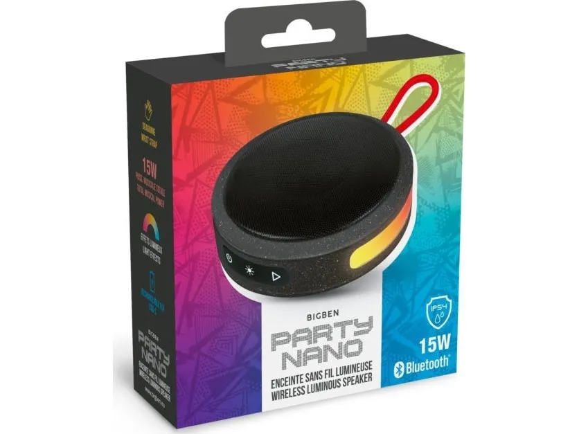 Whether it's hanging from your backpack, hanging from your bike or just to freely listen to your music, the Bluetooth speaker BIGBEN PARTY NANO will be there.