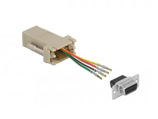 This adapter by Delock expands a serial D-Sub 9 interface via an ISDN, telephone or RJ11/RJ14 cable. The D-Sub 9 interface can be assigned individually and flexibly. The contacts of the adapter can be inserted into the D-Sub 9 housing according to the desired requirements. With a slight click, the sockets snap into place and provide reliable contact.