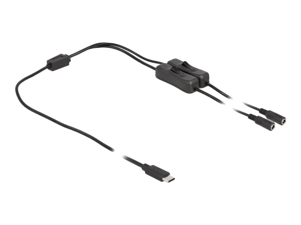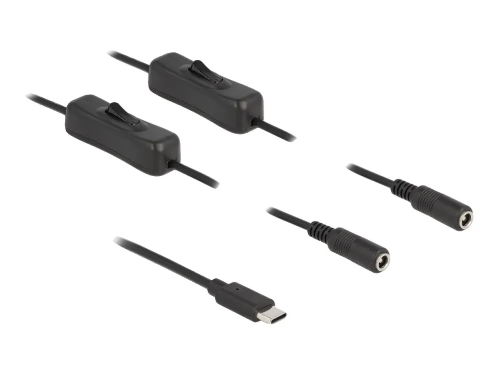 This cable by Delock can be connected to a USB Type-C port in order to supply power to devices with DC plug. By using the single on / off switches the power supply for the connected device can be switched on or off. Therefore it is not needed to remove the cable from the female port to switch off the power supply. The cable can be applied especially for hobby area as well as for tinkerer.