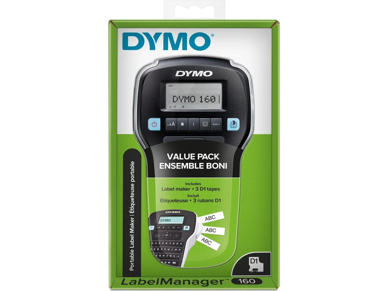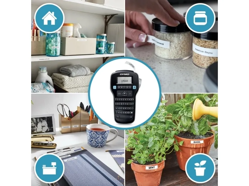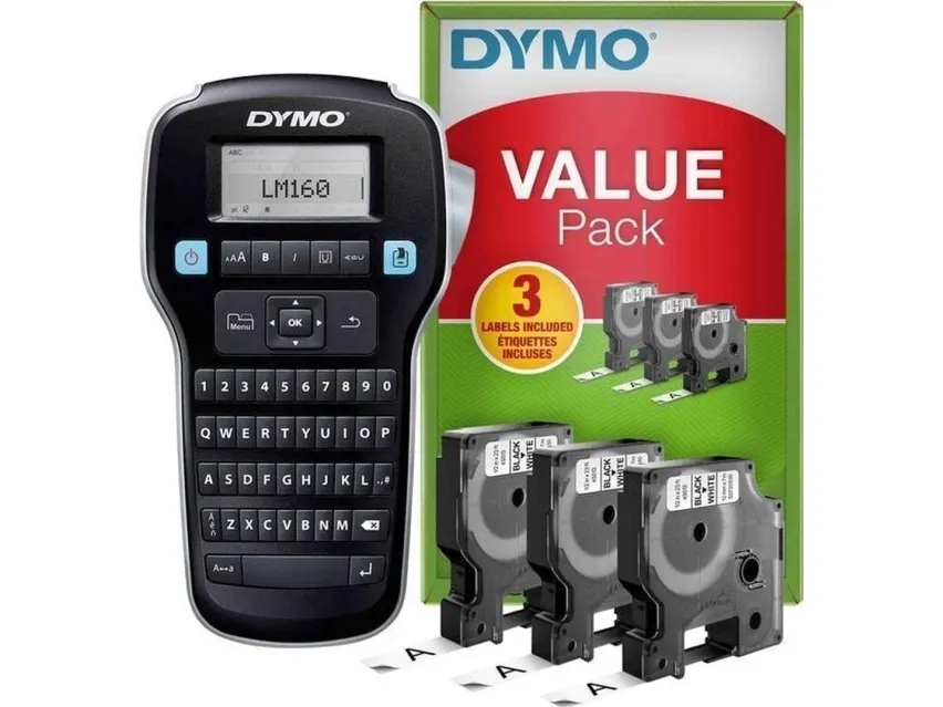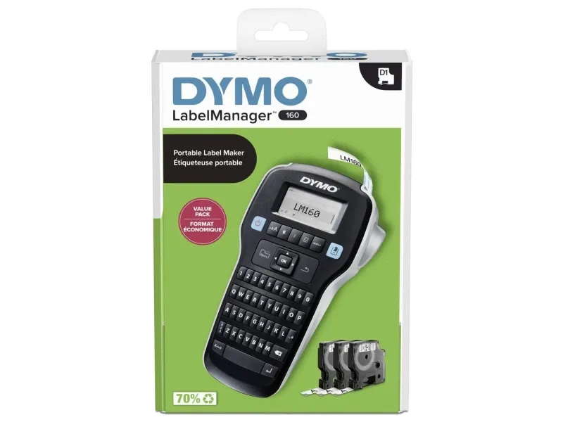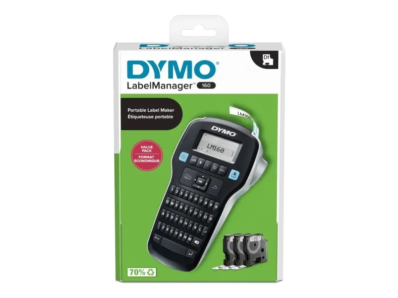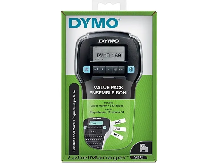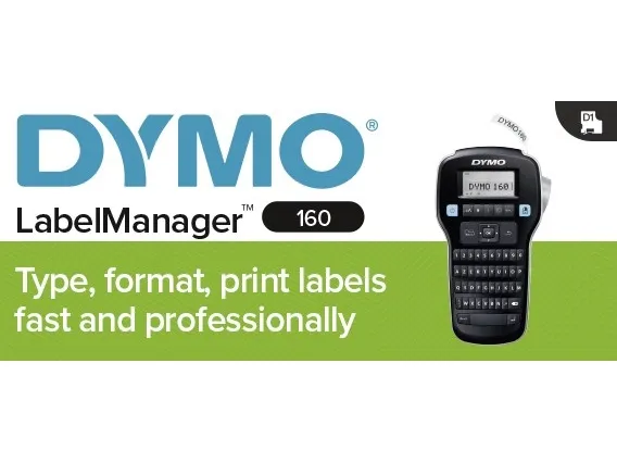 Kjøp en bærbar og rimelig DYMO LabelManager 160 etikettmaskin - og sett ditt preg på verden! Det er bare å skrive inn teksten, formatere den med smarttaster og skrive ut - så enkelt er det å lage profesjonelle etiketter på og rundt kontoret.