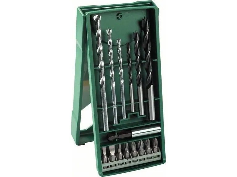 1 x spiss for skrutrekker - PH1 - lengde: 25 mm 1 x spiss for skrutrekker - PH2 - lengde: 25 mm 1 x spiss for skrutrekker - PZ1 - lengde: 25 mm 1 x spiss for skrutrekker - PZ2 - lengde: 25 mm 1 x spiss for skrutrekker - SL4.0 - lengde: 25 mm 1 x spiss for skrutrekker - SL6.0 - lengde: 25 mm 1 x spiss for skrutrekker - T20 - lengde: 25 mm 1 x spiss for skrutrekker - T25 - lengde: 25 mm 1 x bor - for stein - d: 5 mm 1 x bor - for stein - d: 6 mm 1 x bor - for stein - d: 8 mm 1 x bor - for tre - d: 4 mm 1 x bor - for tre - d: 6 mm 1 x bor - for tre - d: 8 mm