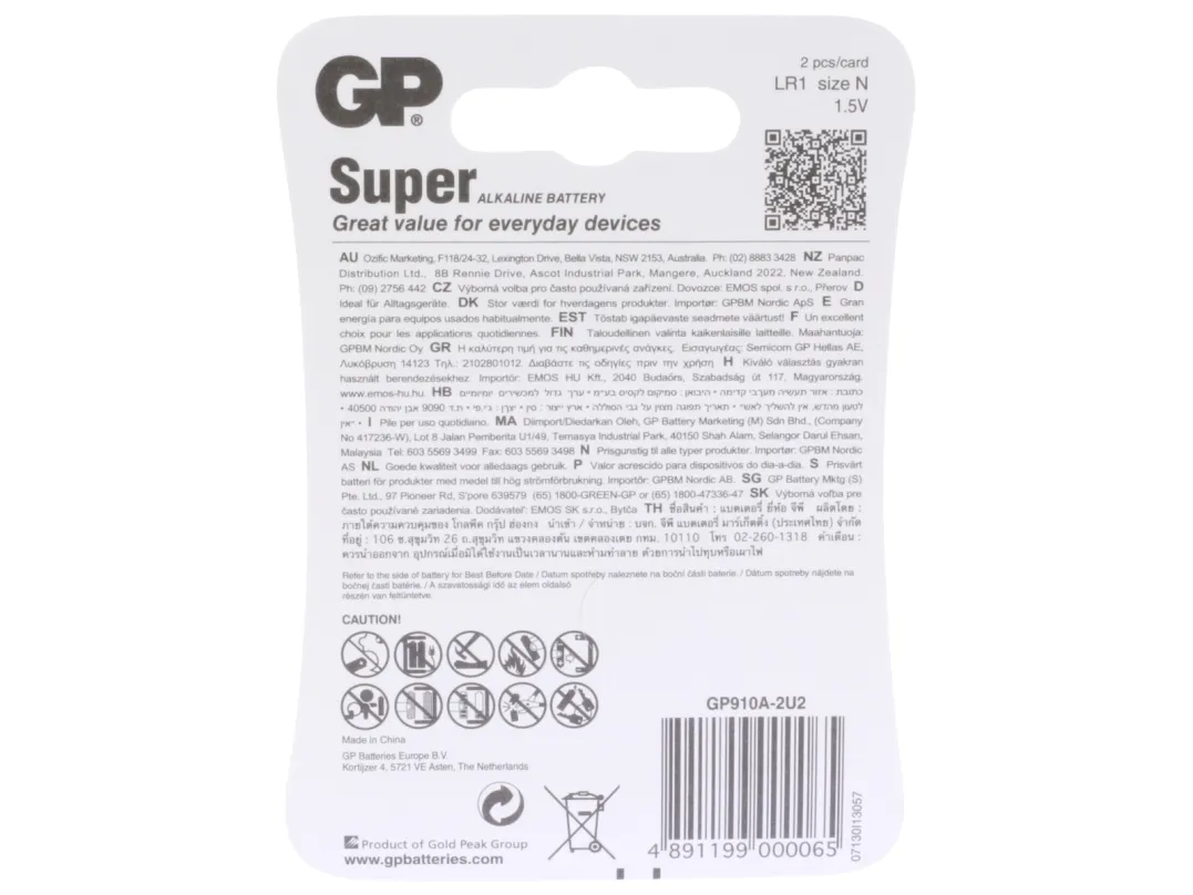 GP Super Alkaline-batterier Lady Super Alkaline batteriet fra GP er udviklet til brug i dagligt brugte apparater, som bruger lidt strøm, for eksempel lommelygter og batteridrevet LED-belysning. Også perfekt til fjernbetjeninger, digitale ure, røg- og bevægelsessensorer.