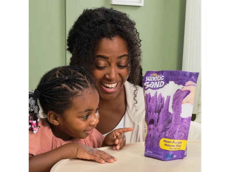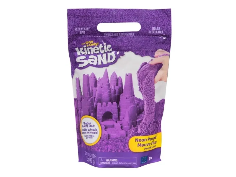 Mix, mould and create anything you can imagine with the Kinetic Sand 2lb purple colour pack! Kinetic Sand is the original magical, moludable and mesmerising sand. It flows through your hands and never dries out so you can play again and again. With 2lbs of colourful purple Kinetic Sand, you can squish it, mix it, cut it or mould it – the creative possibilities are endless! The unique Kinetic Sand formula makes it easy to shape and mould anything you can imagine. Available in four bright colours (purple, green, blue and pink), the Kinetic Sand 2lb colour pack comes in a convenient re-sealable bag, ideal for containment and storage. Create again and again and let Kinetic Sand flow through your hands – it’s so satisfying, you won’t be able to put it down! Kinetic Sand is made from natural sand and is wheat, gluten and casein free. Feel the fun with the Kinetic Sand 2lb purple colour pack!