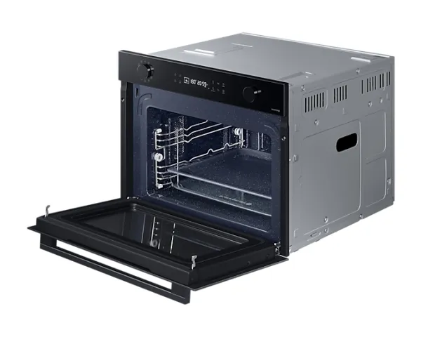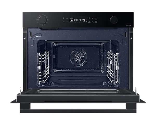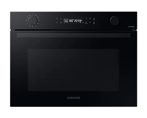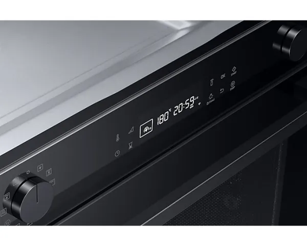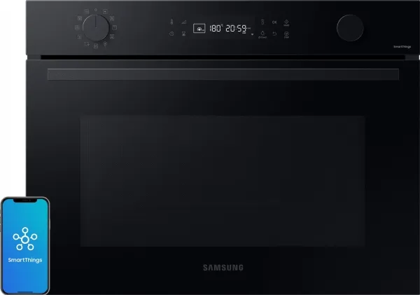 Oppdag Samsung Series 4 NQ5B4553FBK kombinasjonsovn, en perfekt blanding av stil og funksjonalitet for kjøkkenet ditt. Denne mellomstore ovnen på 50 liter er designet for å dekke alle dine matlagingsbehov, med et kraftig 2600 W konveksjons- og grillsystem som sørger for at måltidene dine tilberedes jevnt og raskt. Med 20 automatiske tilberedningsfunksjoner, 5 automatiske avrimingsfunksjoner og ekstra grill- og varmholdingsalternativer er den allsidig. Sikkerheten er en prioritet med barnesikring og trippel glassdør, noe som sikrer et trygt matlagingsmiljø for familien. Ovnens Wi-Fi-tilkobling og IoT-kompatibilitet gir mulighet for praktisk fjernkontroll og overvåking, noe som gjør det enklere enn noensinne å administrere matlagingsoppgavene dine. Vedlikehold er en lek med den selvrensende damprengjøringsfunksjonen og det slitesterke keramiske emaljeinteriøret. Gjør matlagingsopplevelsen bedre med denne kombinasjonsovnen, som er designet for å gjøre tiden din på kjøkkenet både effektiv og hyggelig.