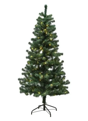 Specifikationer: Type : Juletræ kunstig. Materialer : PVC. Brand hæmmende. Højde : 140 cm Bredde : 74 cm PVC gran kviste: 284 stk. Lyskilde: LED - 230V Antal LED lys: 100 stk. Forbrug i watt pr. time: 3,6W Godkendelser/test : CE, RoHS, EN71-2, EMC, REACH