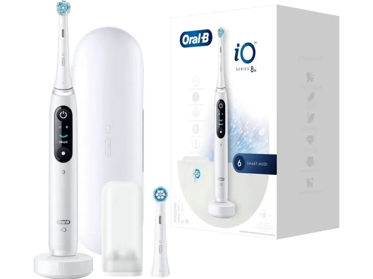 Oral-B iO Series 8N. Purpose: Adult, Toothbrush type: Vibrating toothbrush, Teeth brushing modes: Daily care, Gum care, Intense, Sensitive, Super sensitive, Whitening. Power source: Battery, Battery type: Built-in battery. Package type: Box. Number of handles included: 1 pc(s), Number of brush heads included: 1 pc(s)