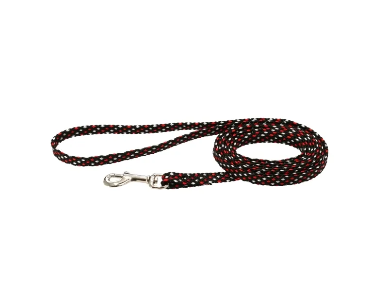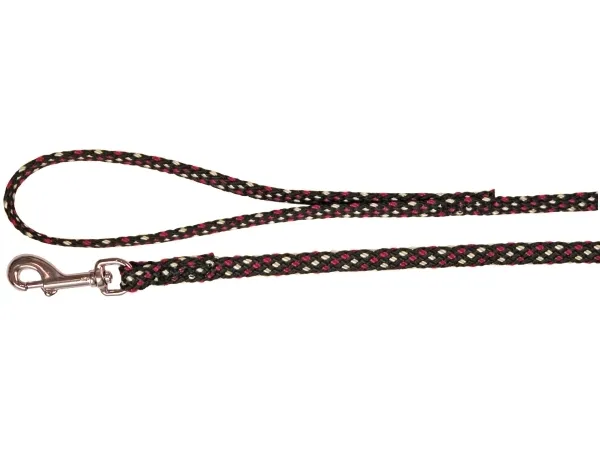 Svart, prickigt, dubbelvävt polyesterkoppel. Perfekt som första koppel till valpen. Kopplet har pistolhake som är lätt att knäppa på och av.