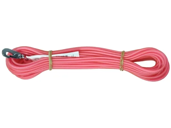 Lätt och följsam spårlina med karbinhake. Perfekt att använda vid motionsträning, spår- och inkallningsövningar av olika slag. Enkel att hålla ren och fastnar inte i snår. Linan är av naturgummiblandning. Perfekt till mindre hundar.