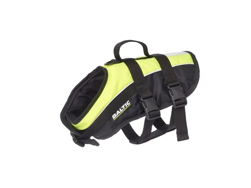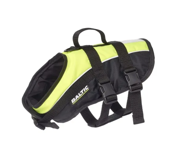 Välbalanserad hundflytväst med lyfthandtag och reflex på ryggen. Breda band med snabbspännen, D-ring för koppel.