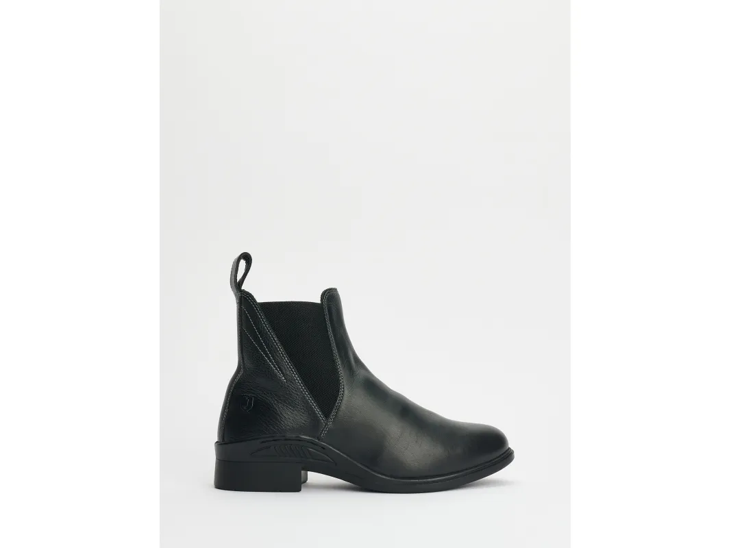 Jodhpur i läder med resår på båda sidorna för bra passform. Skinnklädd insida med foder i syntetpäls, innersula med extra hög komfort. Anti-slip gummisula för bättre fäste på hala underlag. Ljusa dekorsömmar.