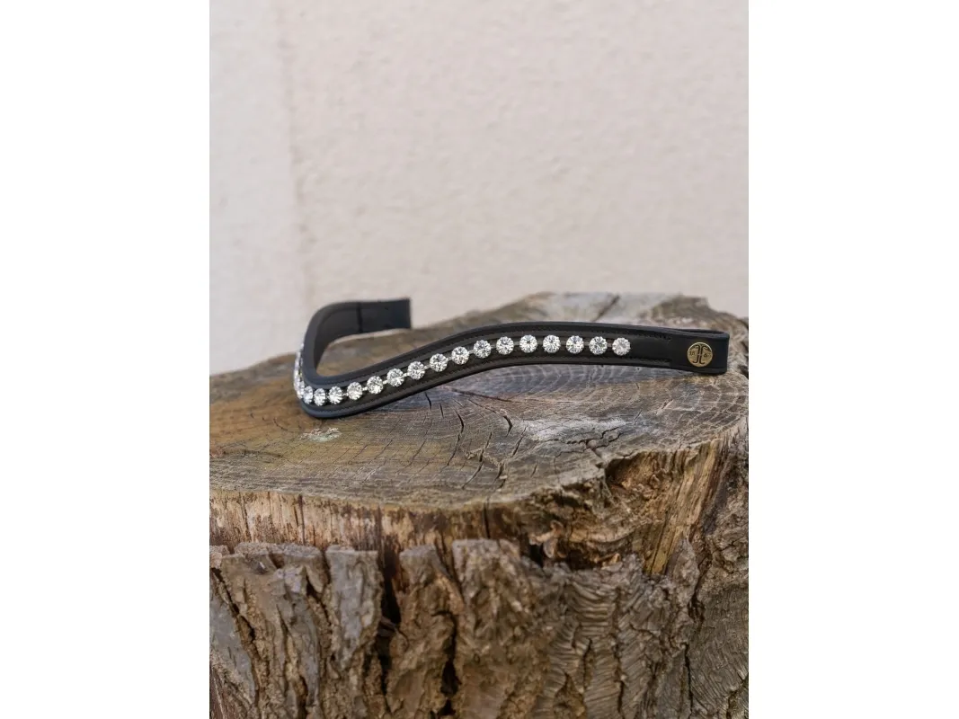 Buet pannebånd i skinn. Store sølvfargede steiner.