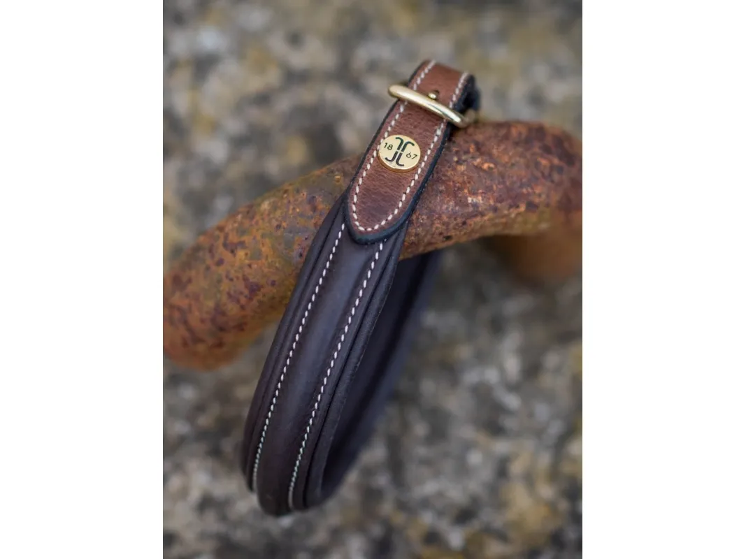 Maximalt mjukt och följsamt hundhalsband i oljat vegatabiliskt garvat läder. London Hundhalsband har mjukt foder och är en perfekt match till vårt London-träns och vårt koppel Alba.