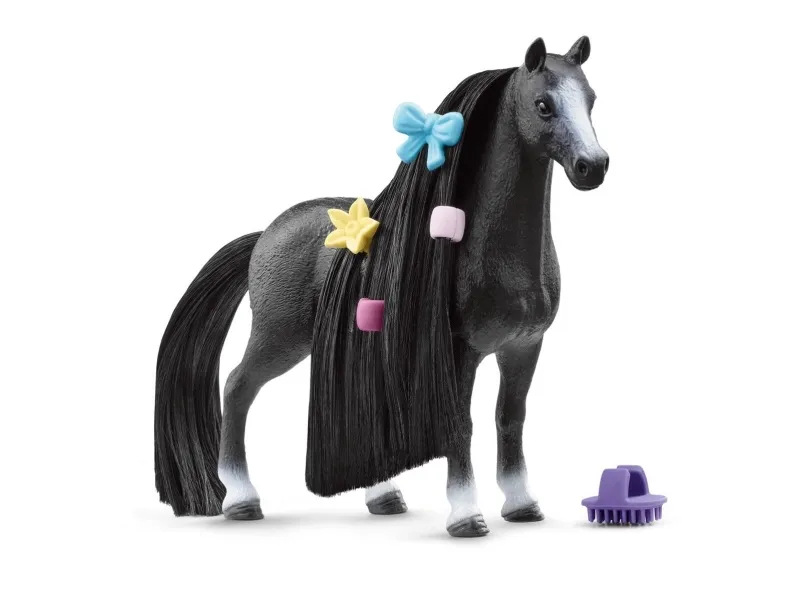 Den vakre Quarter Horse-hoppen har en flott lang man, så du må være spesielt oppmerksom når du steller den. Det er derfor hun har med seg kammen sin overalt for å passe på at håret alltid har en silkeaktig glans. Hvilken flettet frisyre tror du hun vil like i dag? Husk å bruke de vakre hårperlene når du skal dekorere manen hennes. Eller foretrekker hun kanskje en sløyfe i håret?
