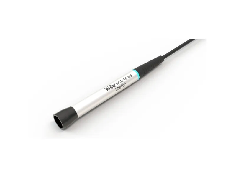 Perfekt til Pico-, picro- og standardloddeanvendelser fra selv de mindste til standard-komponentstørrelserDen intelligente mikro-loddekolbe WXMPS fra Weller er et enestående 2-i-1-loddeværktøj med 40 W, 12 V, der er egnet til næsten alle Pico- og mikro-loddeanvendelser, fra den mindste til standard-komponentstørrelse. Den kan med Weller RTPS-MS-loddespidser anvendes til meget små Pico-programmer, ligesom den kan anvendes med RTMS-MS-loddespidser til mikro-programmer.Ekstremt hurtig opvarmningstid på kun 3 sekunderDen intelligente mikro-loddekolbe WXMPS MS anvender Active spidsteknologi (Cartridge) fra Weller for en optimeret varmeoverførsel med en maksimal effekt på 40 W ved 12 V. den ekstremt hurtige opvarmningstid på 3 sekunder sørger for en fremragende varmeoverførsel og reaktionstid under loddeprocessen for en kontinuerlig arbejdsgang med høj ydeevne. Den korte afstand mellem loddespids og greb sørger for maksimal præcision under loddeprocessen. >Præcis og hurtig varmeoverførsel med hurtig reaktionstidDen optimale sensorposition ved siden af loddespidsen sørger for en fremragende varmeoverførsel, maksimal ydelse og reaktionstidBredt sortiment af loddespidser til enhver anvendelseMere end 40 intelligente universelle loddespidsformer og -størrelser, som kan tilsluttes til en enkelt loddekolbe, uden at der skal bruges ekstra værktøj.Enkel værktøjsidentificering med visuel proceskontrolLokalisering af det tilsluttede værktøj sker hurtigt og nemt på grund af integrerede RGB-ringlys. Tilpas ringlysfarverne i overensstemmelse med din smag.arbejdsforløb ved høj effekt. Den korte afstand mellem spids og greb sørger for maksimal præcision ved loddeprocessen.Intelligent værktøjsfatning beskytter mod fejlAlle tilsluttede værktøjer og tilbehørsdele registreres automatisk af stationerne. Ved brug af værktøj vises med illustration og tekst på det store stationsdisplay.