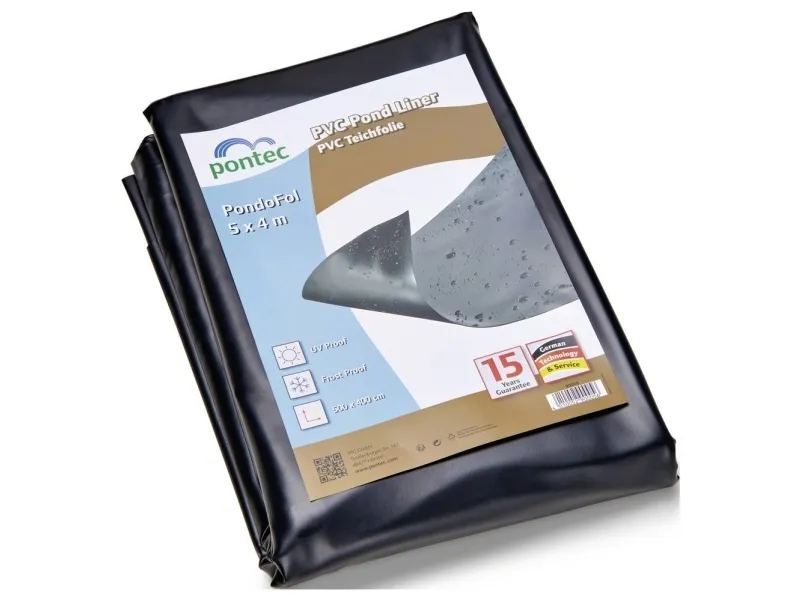 Pontec PVC-damfolie sort 0,5 mm/5 x 4 m Lang levetid og fleksibel: Med dette damfolieskærme på 5 m x 4 m kan mindre havedamme eller bække gøres naturvenlige. Den består af sort PVC, er 0,5 mm stærk, uigennemsigtig og lysbestandig. Ved udlægning er den yderst fleksibel, kan den uden problemer limes fast og ved behov også repareres (svejsesøm). Den giver en høj modstandskraft over for forskellige vejrforhold og rodtryk, er kuldebestandig i henhold til din 53361 og er modstandsdygtigt over for rådning.