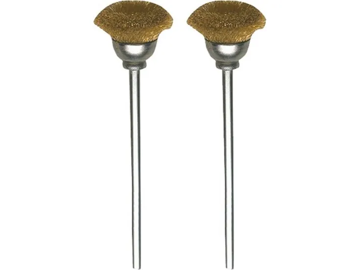 Ideal for surface cleaning on brass and brass alloys, copper, precious and semi-precious metals, stainless steel, semiprecious stones, plastic and wood. Acid resistant and electrically neutral, thus suitable for working with electronic components. - Shank Size 3/32" (2.35mm) - Brush Tip Size: 33/64" wide - Contains 2 piecesProxxon 28963