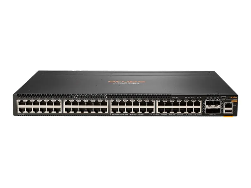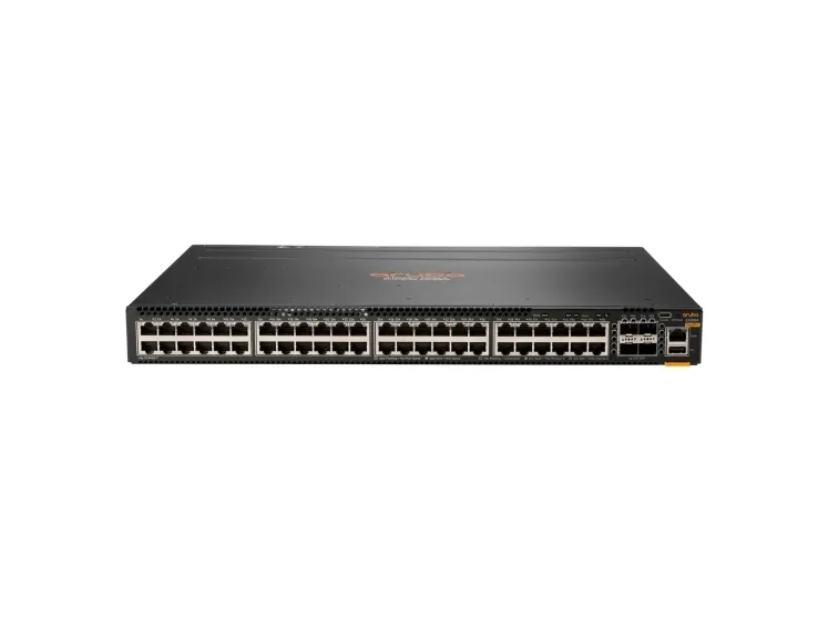 The HPE Aruba Networking CX 6300 Switch Series is a modern, flexible, and intelligent family of AOS-CX stackable switches ideal for access, aggregation, and data center top-of-rack (TOR) deployments. With a cloud-centric design that combines a fully programmable OS with the HPE Aruba Networwing Analytics Engine, the CX 6300 extends industry-leading monitoring and troubleshooting capabilities to the access layer. Support of HPE Aruba Networking NetEdit and HPE CX Mobile App verify that configurations are flawless and easy to deploy. A powerful HPE Aruba Gen7 ASIC architecture delivers fast, non-blocking performance, meaning your network is ready for tomorrow's unpredictable demands. HPE Virtual Stacking Framework (VSF) allows for stacking of up to 10 switches, providing scale and simplified management. This flexible series has built-in highspeed uplinks and supports high density IEEE 802.3bt high power PoE with HPE Smart Rate multi-gigabit Ethernet for high speed APs and IoT devices.