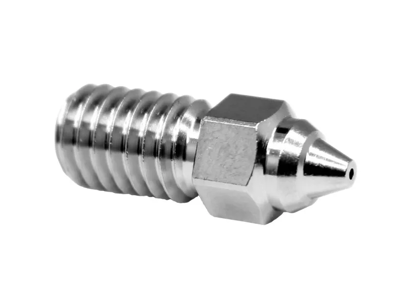 Micro Swiss Brass plated Wear Resistant Nozzle for Creality Ender 7 0.6 mm Dette er en messing slitagesikker dyse til Creality Ender 7-printere. Mundstykket består af et 360-graders-messing-basismateriale og er belagt med en TwinClad XT-belægning. TwinClad XT er en nikkelforbindelsesbelægning, der er lavet til meget lav friktion. Det har en af de laveste friktionskoefficienter, bedre end nikkel med PTFE-Co-udskillelse. TwinClad XT-belægningen er også meget hård og slidstærk. Hvis du arbejder med slibende kulfiber-, rustfrit stål-, træfyldte eller andre metalfyldte filamenter, vil det forlænge din munds levetid betydeligt.Velegnet til:Creality Ender 7Creality Spider-hotend