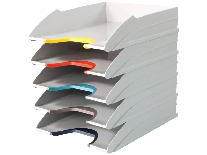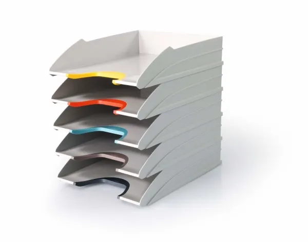 The DURABLE VARICOLOR MIX letter tray is a practical solution for anyone looking to streamline their document organization. With five color-coded compartments, it allows for easy categorization and retrieval of documents, reducing the time spent searching for important papers. Its beveled design not only adds a modern touch to any workspace but also facilitates vertical stacking, making it a space-efficient addition to your office. The tray's compatibility with A4 and C4 sizes ensures it meets a variety of document storage needs, while its durable plastic construction ensures longevity. Whether for a busy office environment or a home study, the DURABLE VARICOLOR MIX letter tray offers a blend of functionality and style, making document organization effortless and efficient.