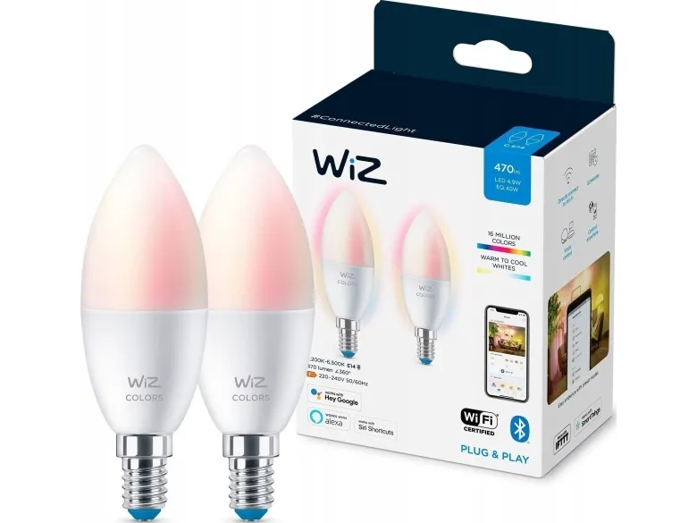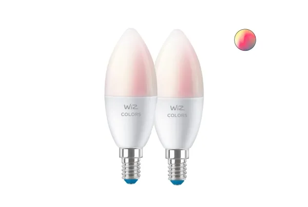 WiZ Colors - LED-lyspære - form: C37 - mattslipt finish - E14 - 4.9 W - flerfarget/dagslys til varmt hvitt lys - 2200-6500 K (en pakke 2)
