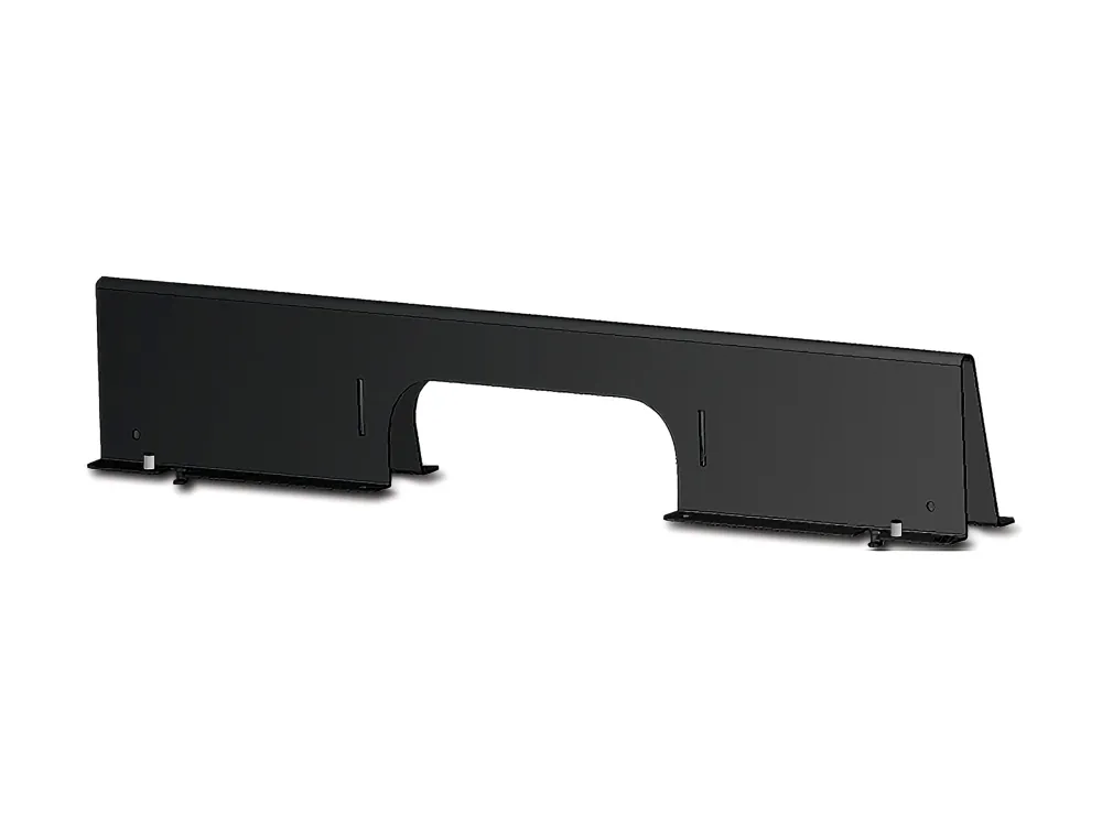 The pass-through Partition allows overhead routing of networking cables on top of the NetShelter enclosures and 4-post racks. Two Partitions attach without tools to the roof in a variety of depths. The pass-through Partition is designed with a cable access hole to facilitate routing cables. Each partition ships with ground studs and one 8 inch/203mm grounding strap.