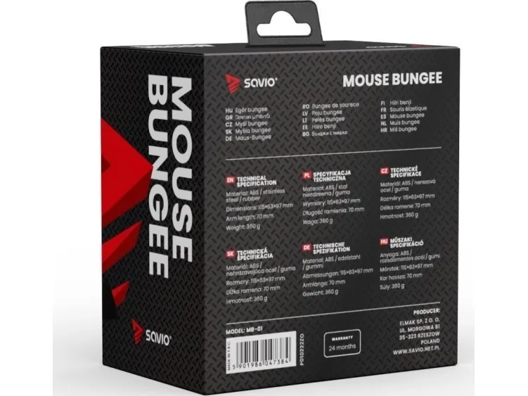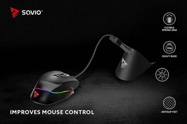 BUNGEE CABLE MOUSE SAVIO MB-01 BLACK FLEX ARM STABILITY CONTROL RUBBER