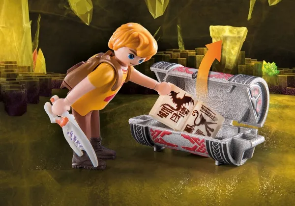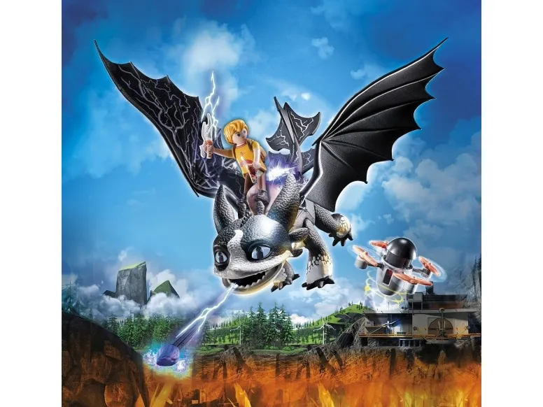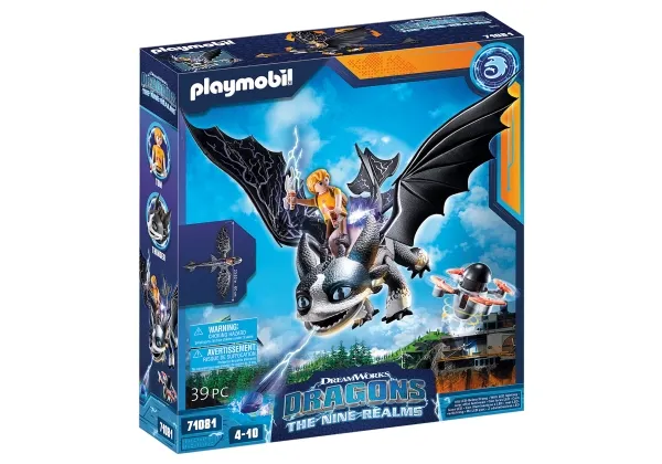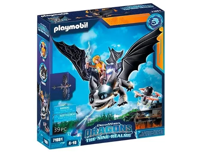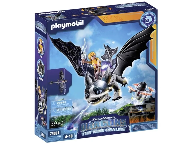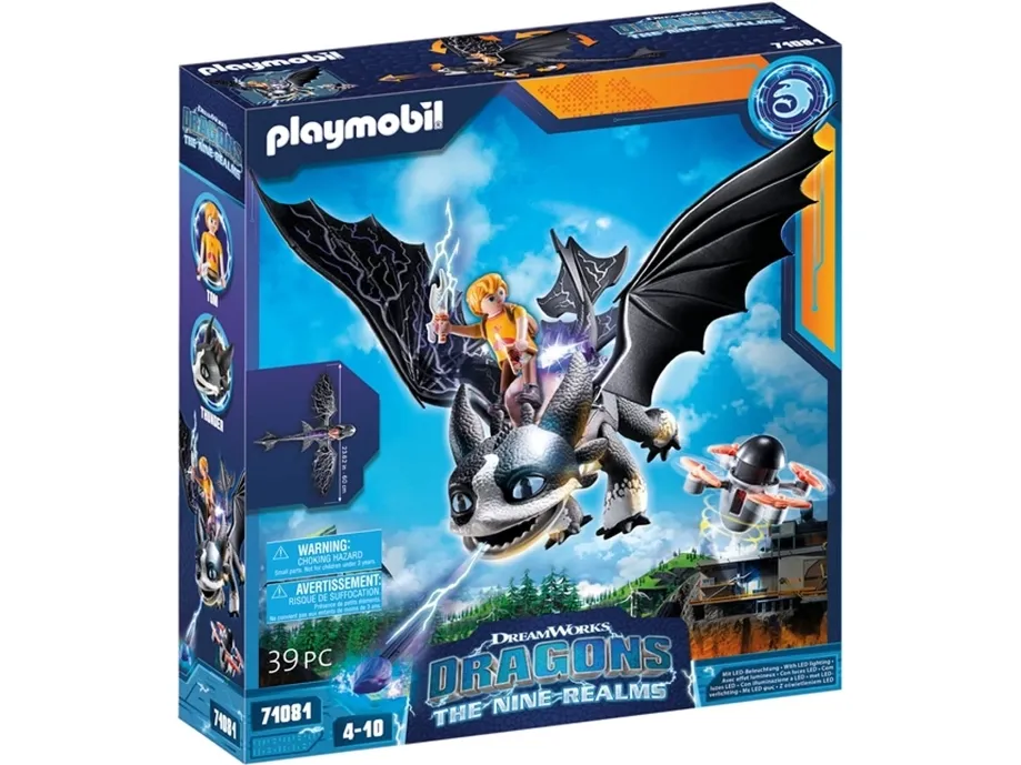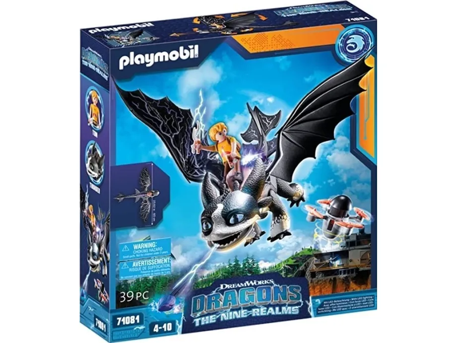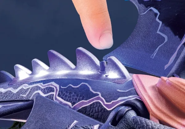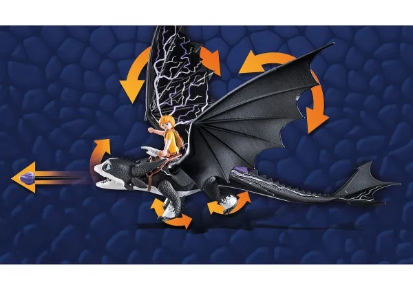 Dragons: The Nine Realms - Thunder & Tom Med skydefunktion: For at ilægge pilen åbnes gabet ved at trykke bagpå på hovedet eller ørerne. Pilen kan nu lægges i forfra og trykkes bagud til indgreb. Maul kan lukkes helt igen med den pil, der er lagt i. Til udløsning af projektilen trykkes hovedet eller ørerne nedad til anslaget. Først åbner der sig mund, og derefter bliver pilen katapulteret ud.