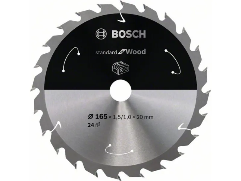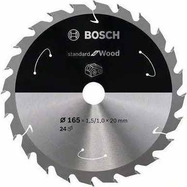 Batteri-rundsavsklinge standard for Wood, 165 x 1,5/1 x 20, 24 tænder Ekstra tynde snit tilføj reducerer energibehov Førsteklasses hårdmetal tænder sikrer pålidelige resultater ved savning Aggressive tand vinkel sørger for glatte snit Med rundsavsklinge Standard for Wood optimeres batteritiden. Den ekstra smalle snit reducerer friktion og materialefjernelse, så der er brug for mindre effekt til en ubesværet savning. Førsteklasses karbid-tænder sørger for pålidelige resultater ved savning. Aggressive tandvinkler sørger for glatte snit. Savklinge egnet til alle typer træ og træmateriale. Savklingen passer til alle gængse batteri-dykker- og håndrundsave samt batteri-metalsave. Rundsavsklinge Standard for Wood giver takket være sin førsteklasses holdertænder pålidelige resultater ved savning. Forlængelsesslidser reducerer støjniveauet betragteligt under arbejdet. Udvendig diameter mm: 165, boring mm: 20, skærebredde (b1) mm: 1,5, stampladetykkelse (b2) mm: 1,0, skærebredde (b1) mm / grundklingetykkelse (b2) mm: 1,5/1,0, tandantal: 24, tandform: WZ, maks. Rotationshastighed (omdr/min): 9500, snitresultat: 2, spånvinkel ° w1: 25, frivinkel ° w2: 10