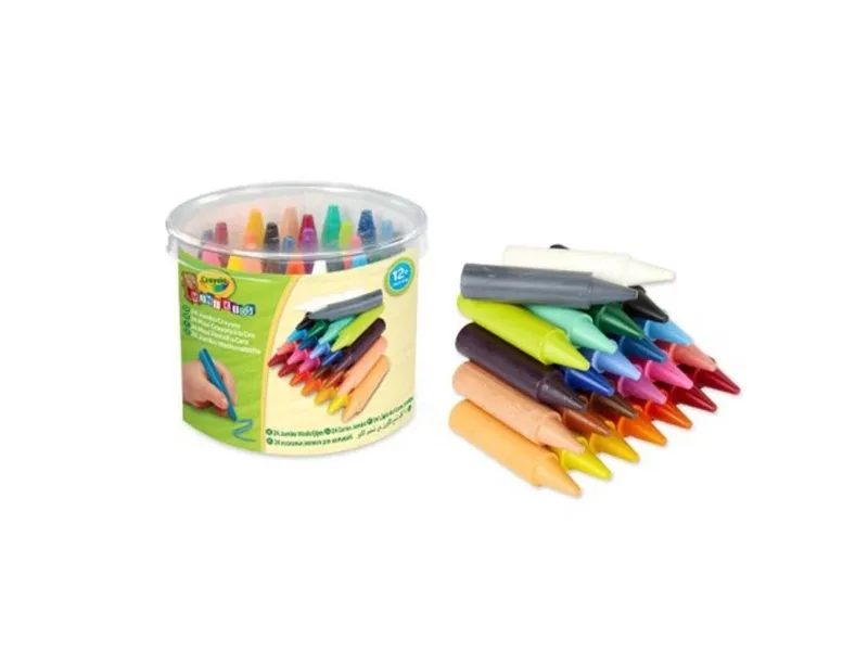 CRAYOLA MINI KIDS: Serien er spesielt utviklet for små førskolebarn som nærmer seg fargeverdenen for første gang. VOKSSTIFTER: 24 runde vokskritt designet for lett grep med små hender. FARGELEGG TRYGT: For barn som akkurat har begynt å utforske farger, er Crayola-kritt trygge og giftfrie. KLARE OG LIVFULLE FARGER : Fyldige og myke strøk for enkel og morsom fargelegging.