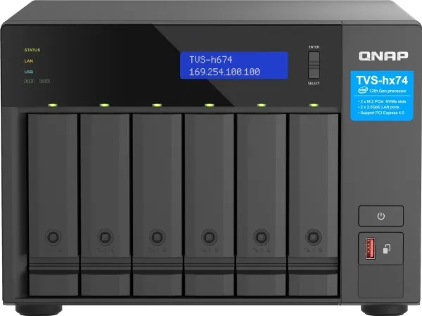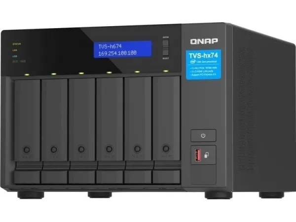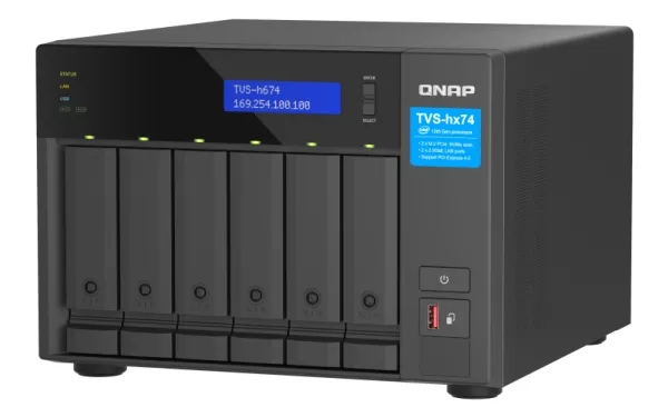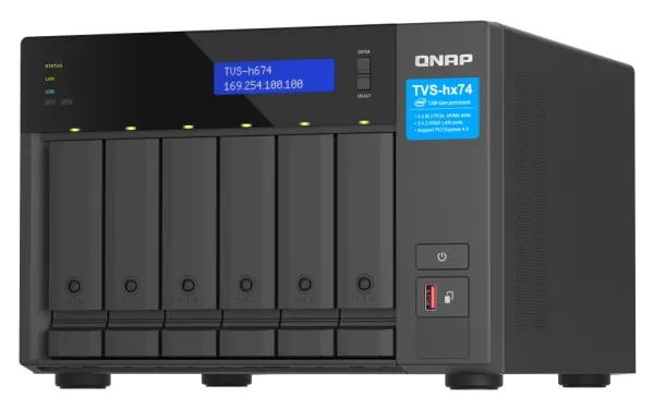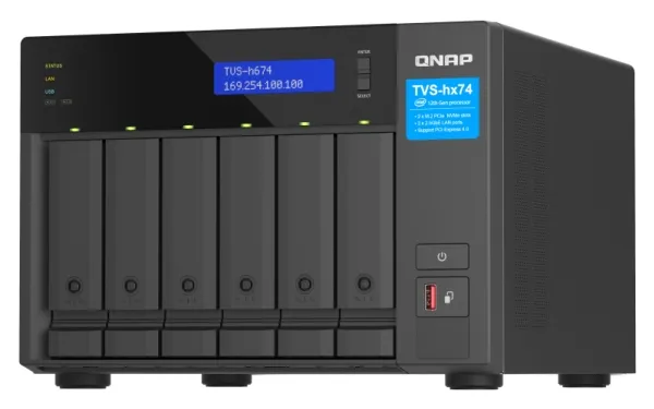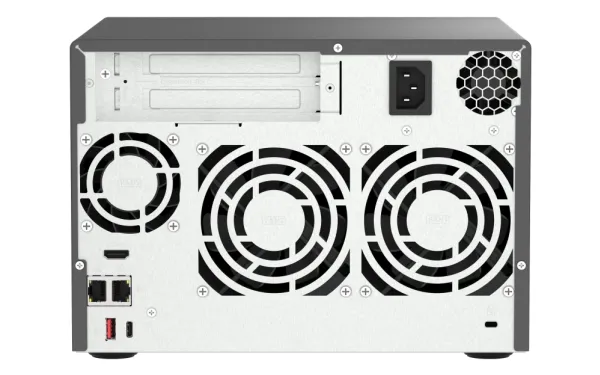 With an Intel Core i5 six-core Processor or Intel Core i3 quad-core processor to support the ZFS-based QuTS hero operating system, the TVS-H674 SMB NAS ensures data integrity and supports block-level inline data deduplication and compression, near-limitless snapshots, real-time SnapSync, and SSD optimization. Whether for mission-critical file servers, virtualization servers, collaborative video editing, or efficient data backup and recovery applications, the TVS-H674 delivers an ideal NAS solution. The high-performance TVS-H674 provides PCIe Gen 4 (up to twice the transmission speed of Gen 3) expandability, M.2 NVMe SSD caching, and 2.5GbE connectivity for high-speed virtualization network environments.