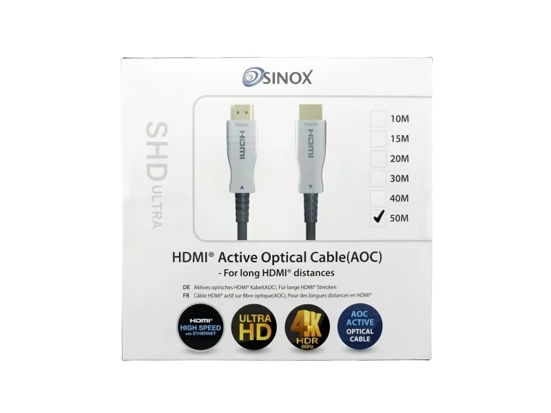 Sinox - High Speed - HDMI-kabel med Ethernet - HDMI hann til HDMI hann - 50 m - fiberoptisk - svart - 4K-støtte