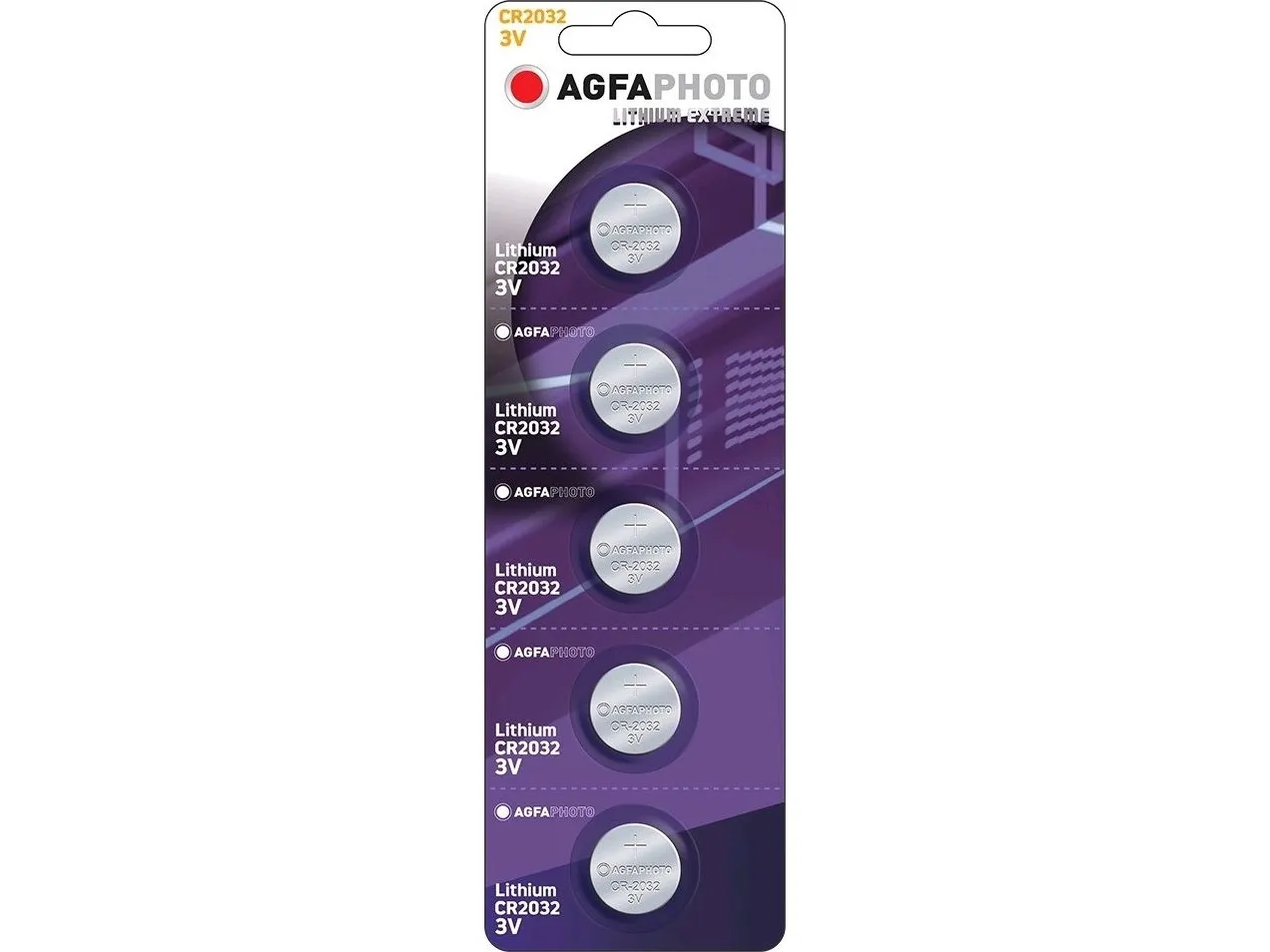 AgfaPhoto Lithium-knapcelle CR2032, 5 stk. AgfaPhoto Lithium-knapcellen udmærker sig ved høj energitæthed, lille selvafladning og en god temperaturreaktion (-20 til +60 °C). Anvendelsesområder er: Lommeregnere, armbåndsure, Køkkenvægte, hovedtelefoner. I 5-storkøbspakke