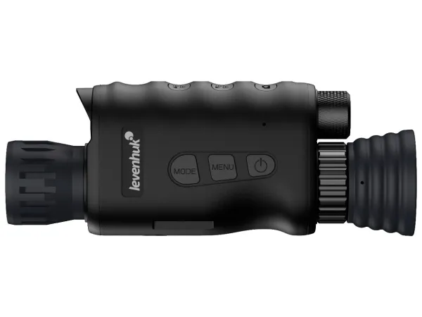 The ergonomic Levenhuk Halo 13X PLUS monocular is made of lightweight but durable plastic and fits comfortably in your hands. The device is both dust- and splash-proof, which means it is designed for bad weather and field testing. The device is powered by a rechargeable battery. In comparison with the previous model, with the IR illumination switched on, the continuous operating time on a single charge is longer (up to 7.5 hours). There is an auto-off function, which can be activated not only in 3, 5 or 10 minutes of inactivity but almost immediately in a minute. It helps to save battery power significantly.