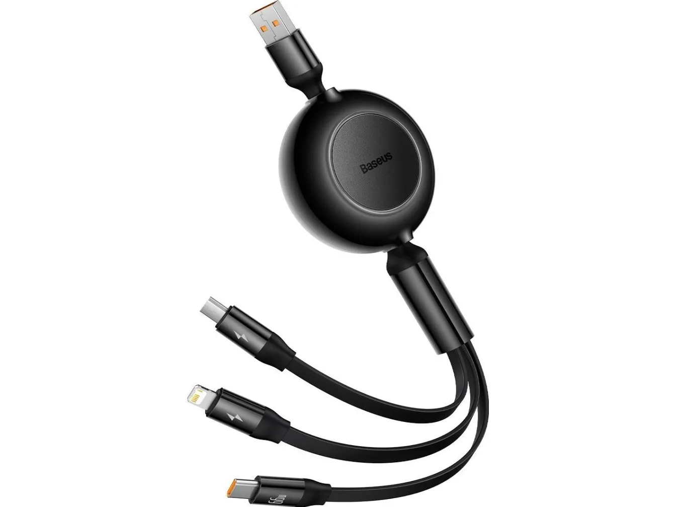 The cable has 3 output ports - USB-C, Lightning and micro USB. Thus, you will be able to use it in many situations, moreover, you can plug in 3 devices at once without any problems. The compact design with a retractable mechanism ensures easy storage and transportation. Bet on the combination of functionality and convenience with Baseus Bright Mirror 3 !
