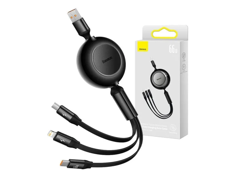 With the Baseus Bright Mirror 3-in-1 USB cable you will gain access to fast charging of laptops, Apple devices and other equipment. The cable also allows data transmission (Lightning) at speeds of up to 480 Mbps. The retractable, compact design ensures easy storage and transportation, and the built-in security system protects connected devices.